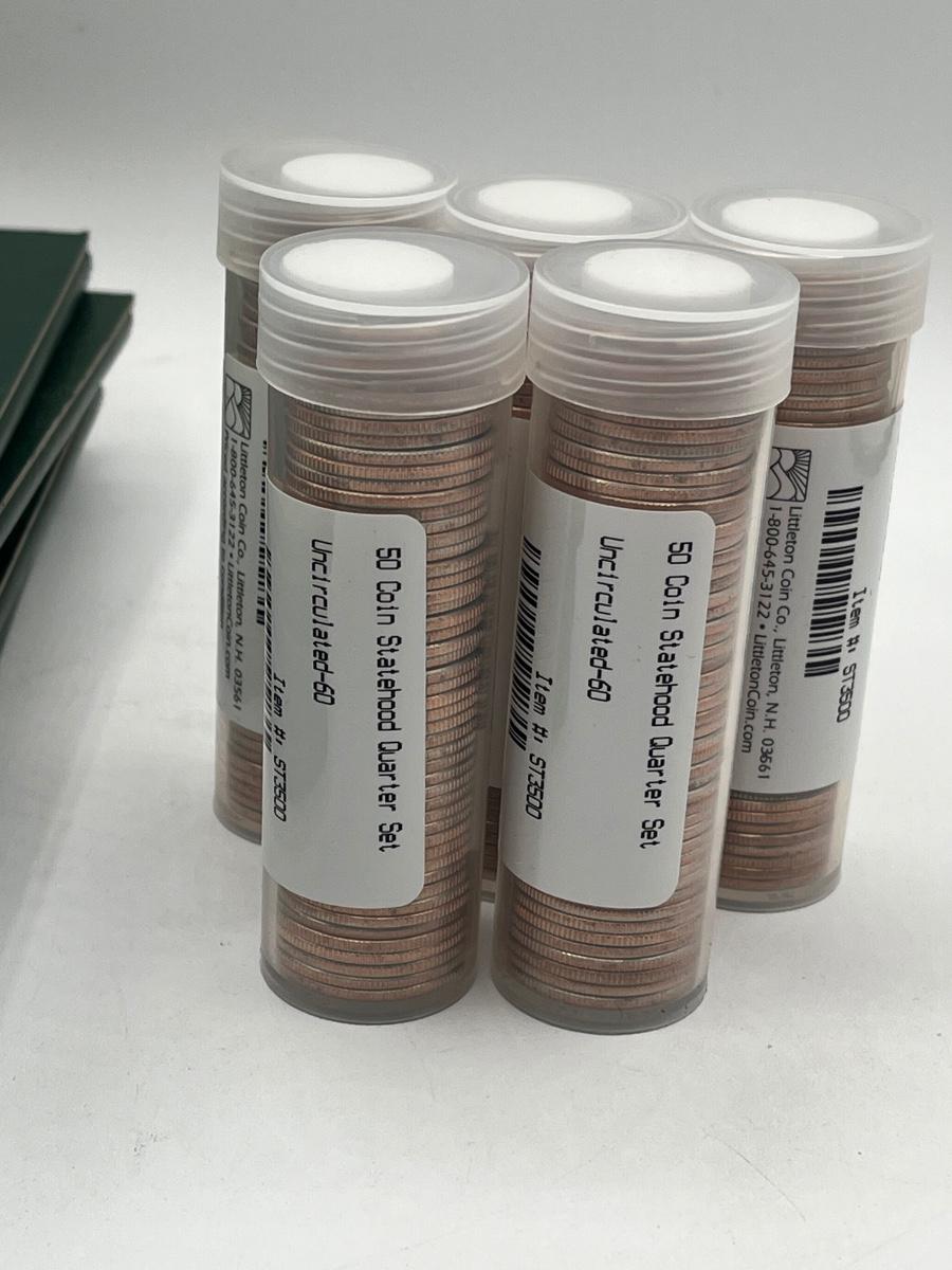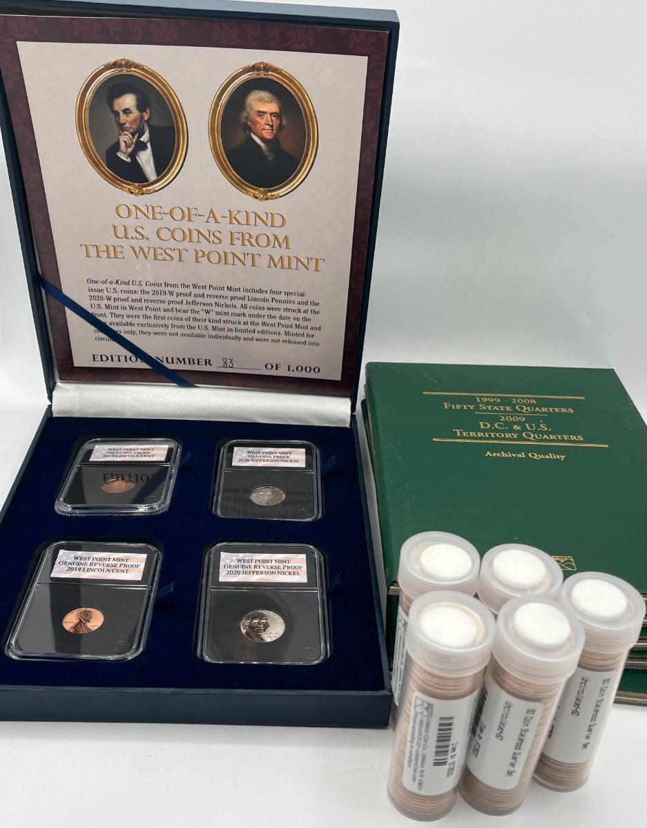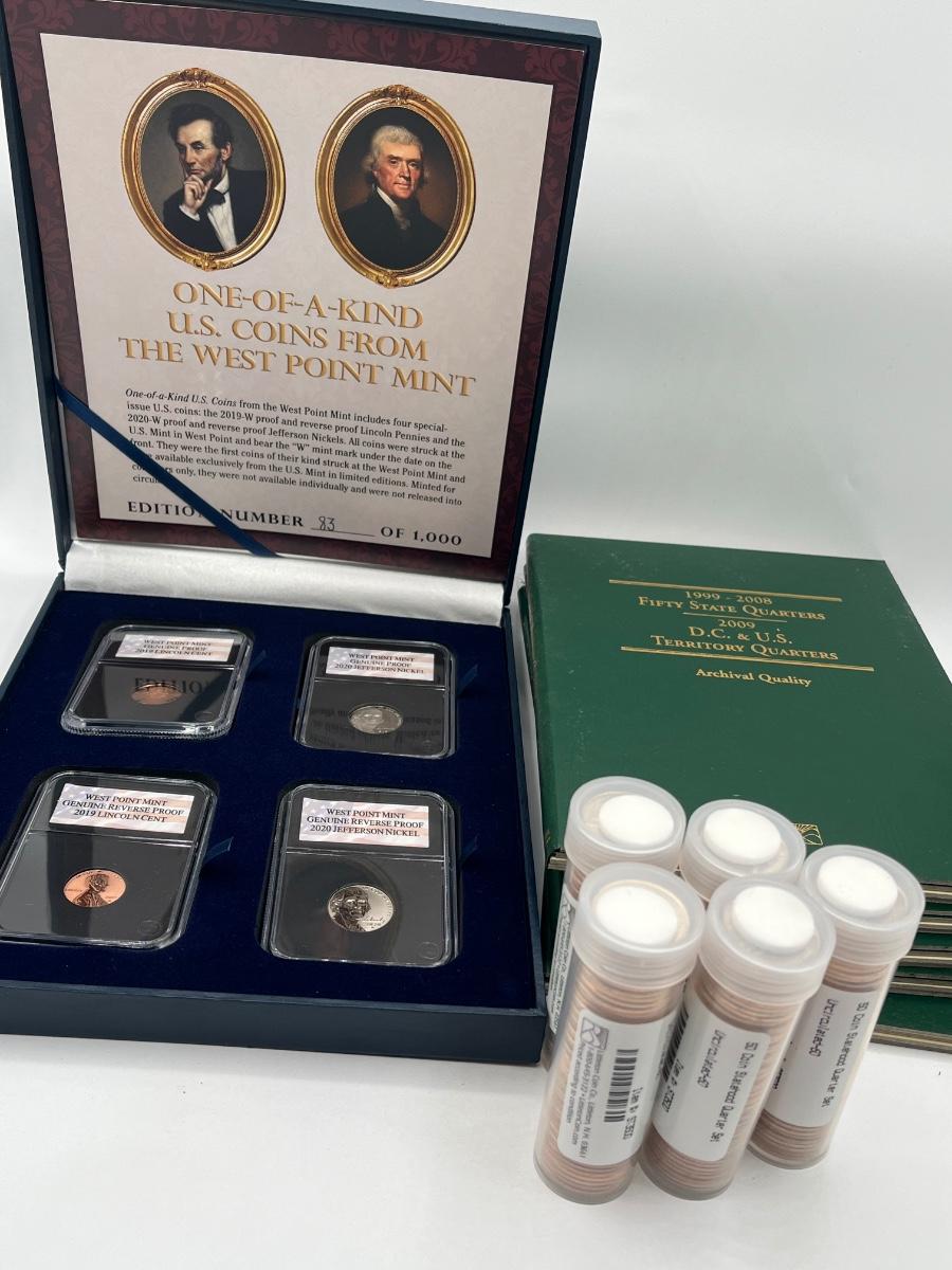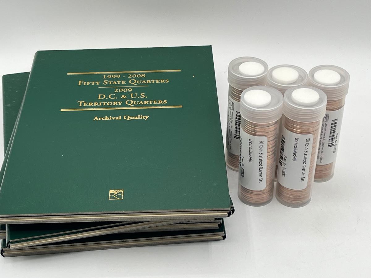 LOT 52B: Five Sets of Uncirculated 50-Coin State Quarters and Display Books + West Point Mint Coin Set