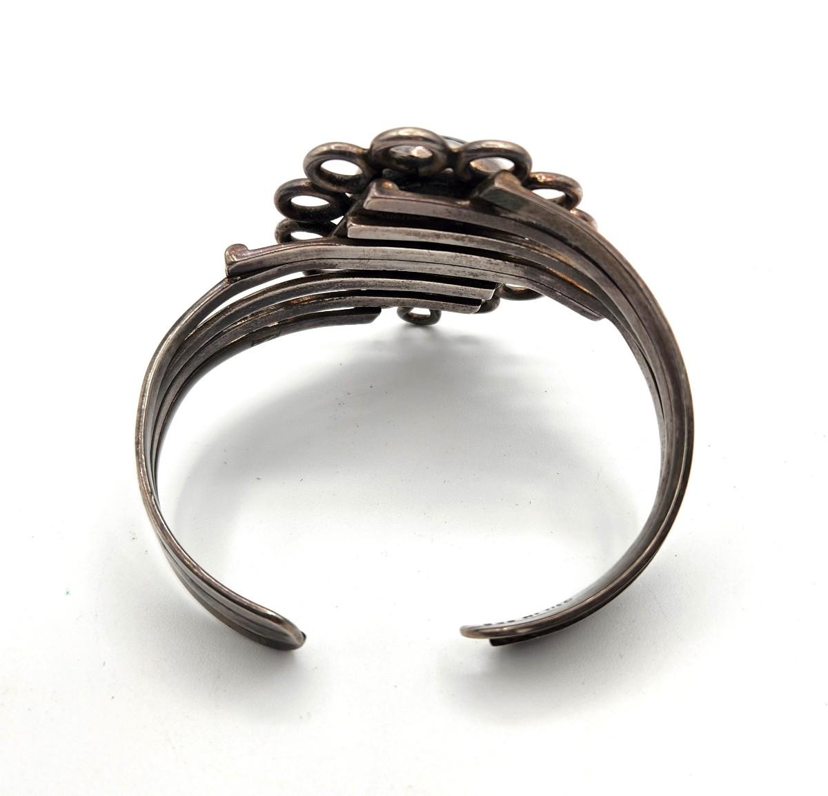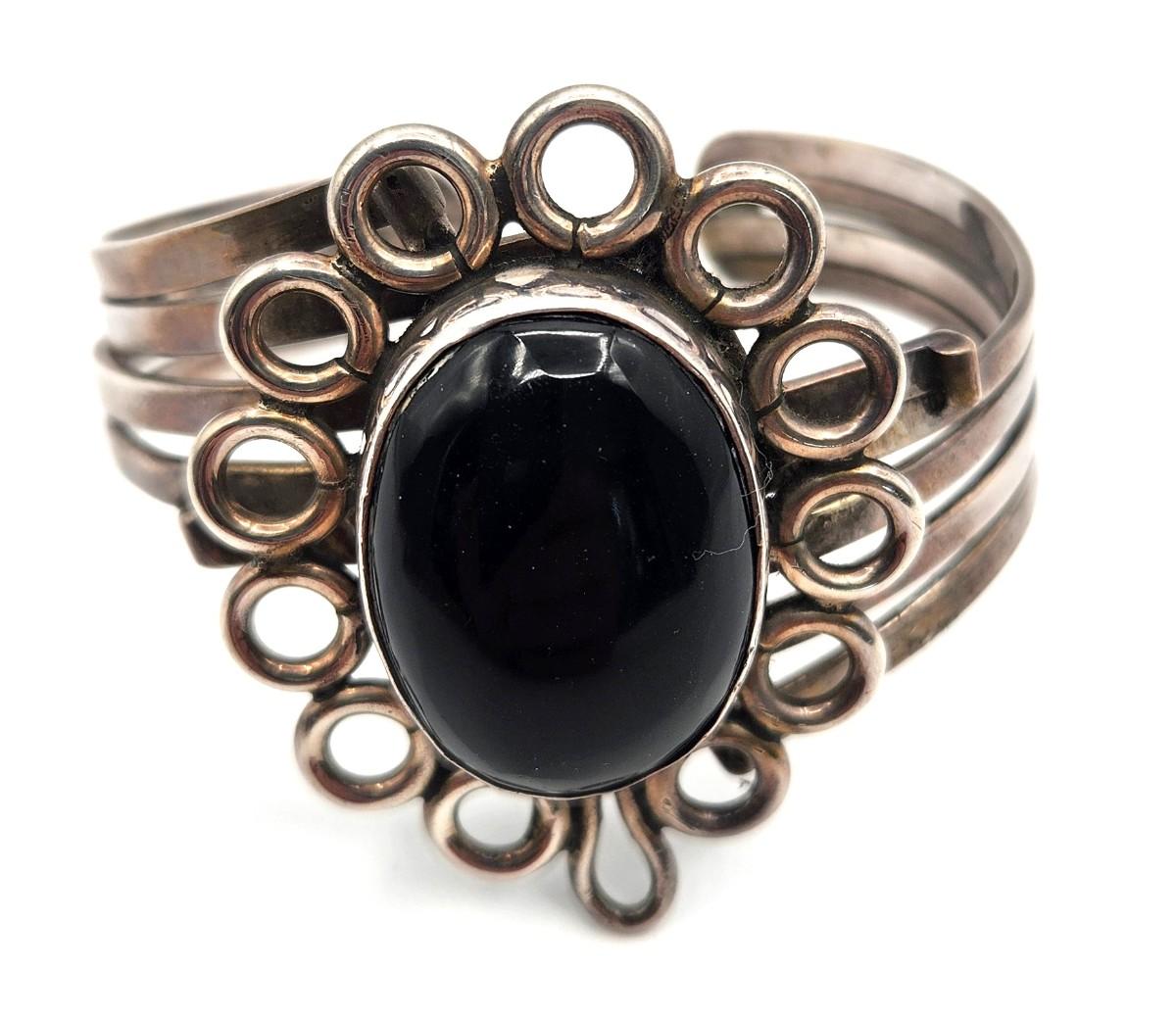 Lot #52D Sterling Silver Mexican Cuff Bracelet with Large Oval Onyx