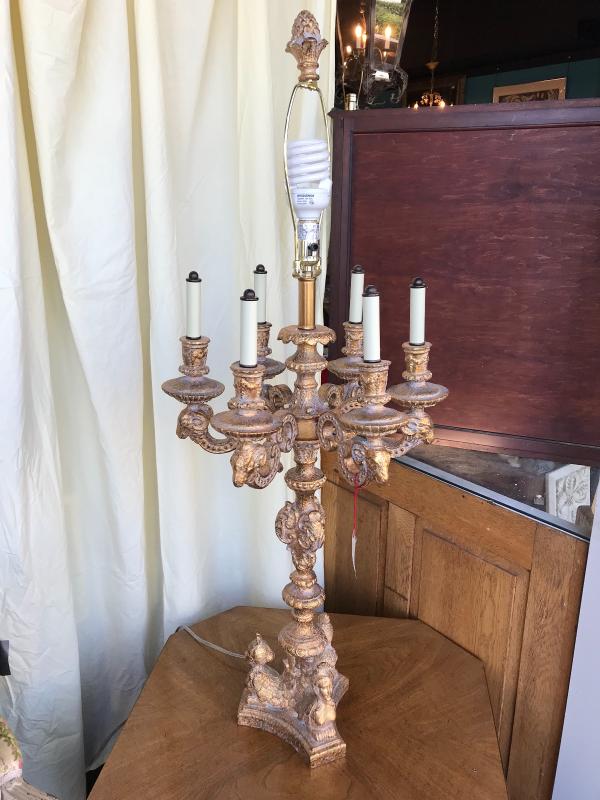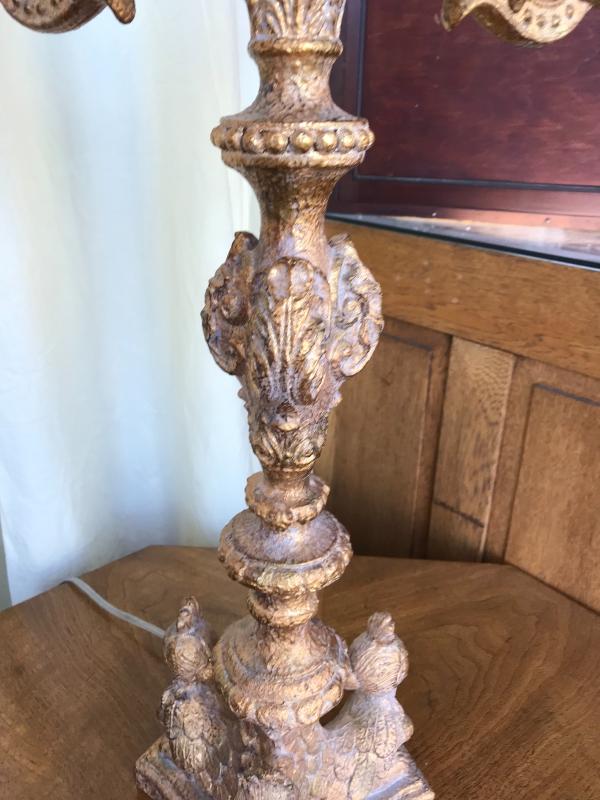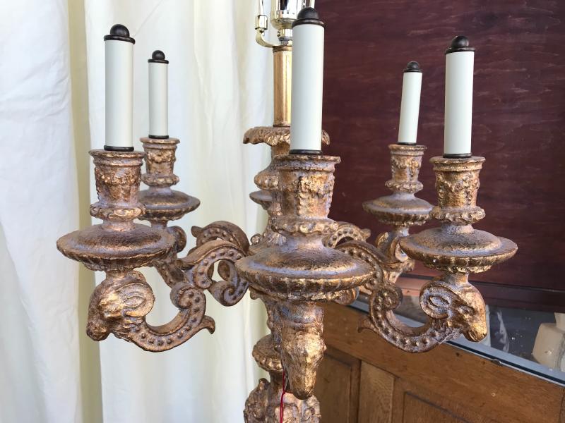 Lot 52-Designer Gilt Rams Head Candelabra Lamp w/o Shade