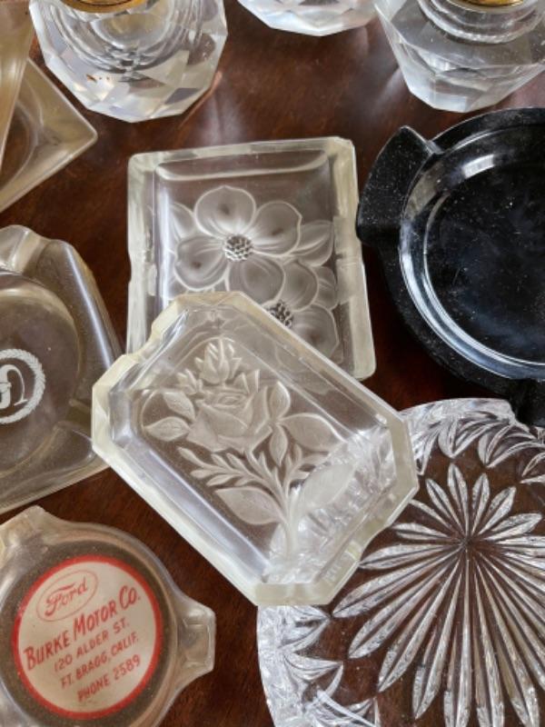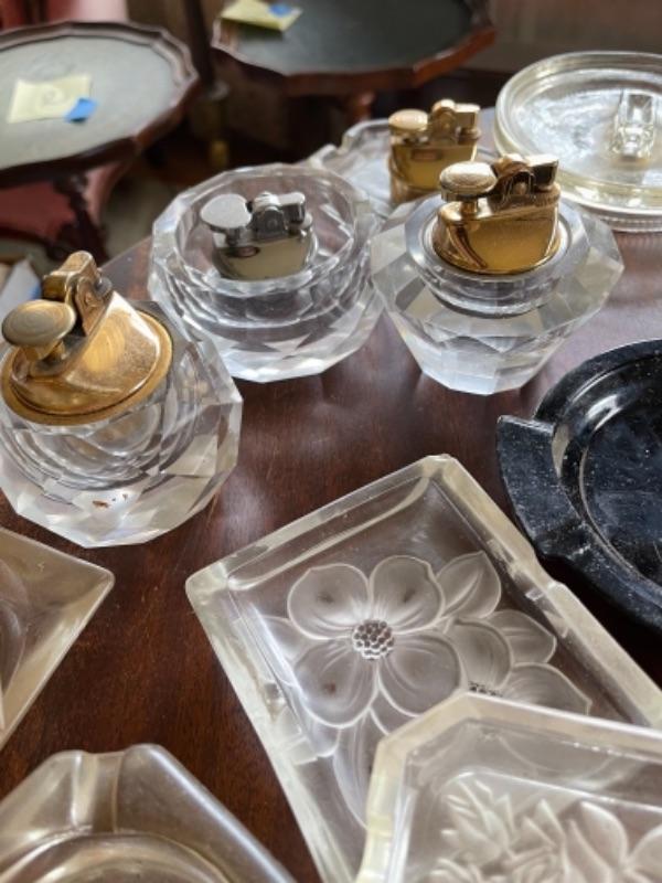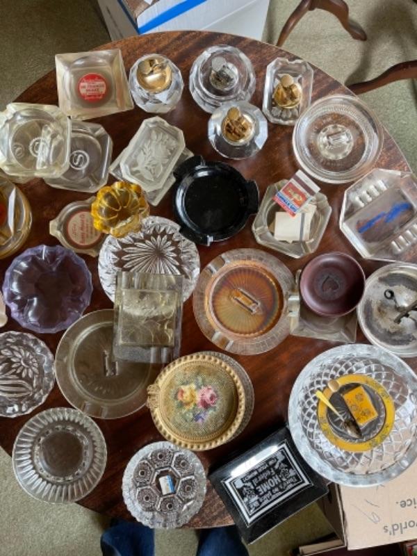 Lot 52L. Large collection of ashtrays“”glass, souvenir, ceramic, crystal, plastic, crystal lighters, etc.--$65