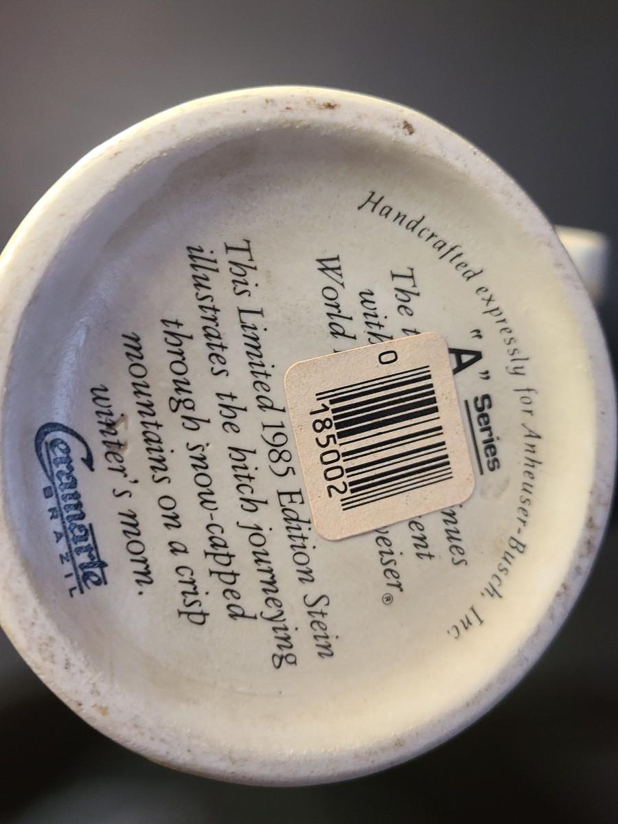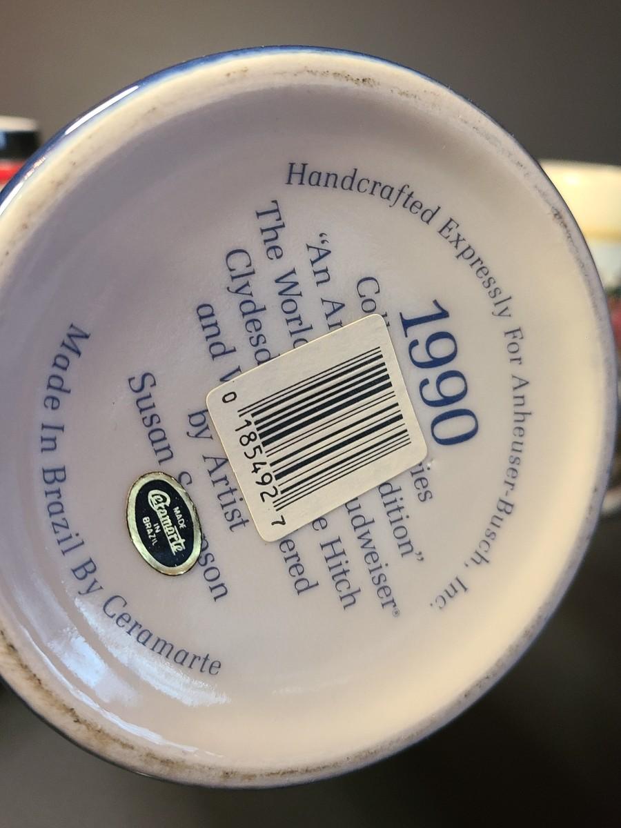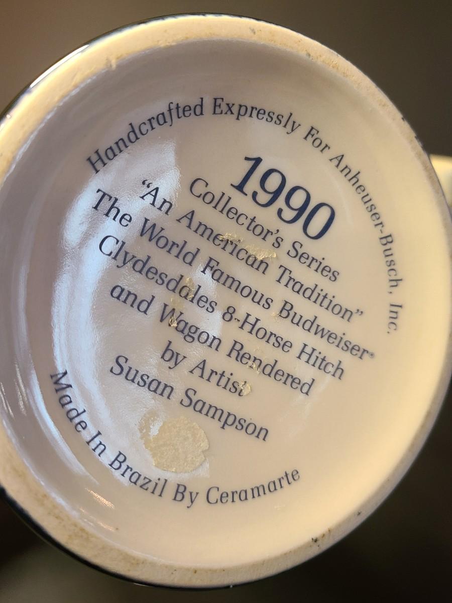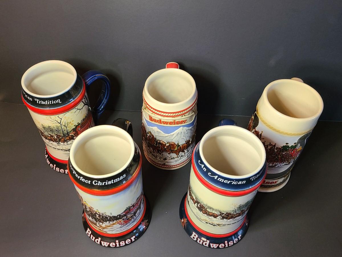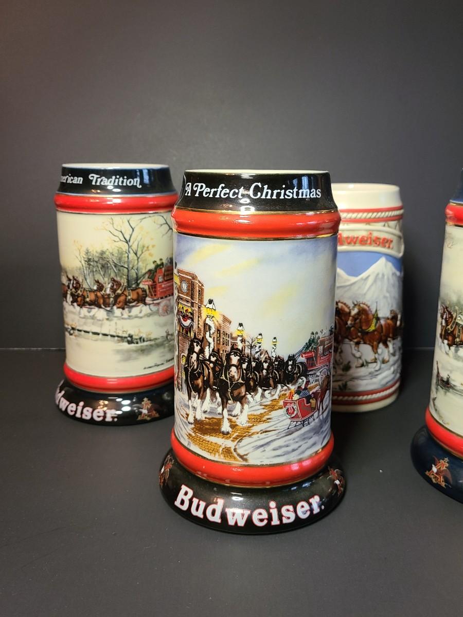 Budweiser collectible steins. Pre-owned. Used as decor on shelf. Functional too!