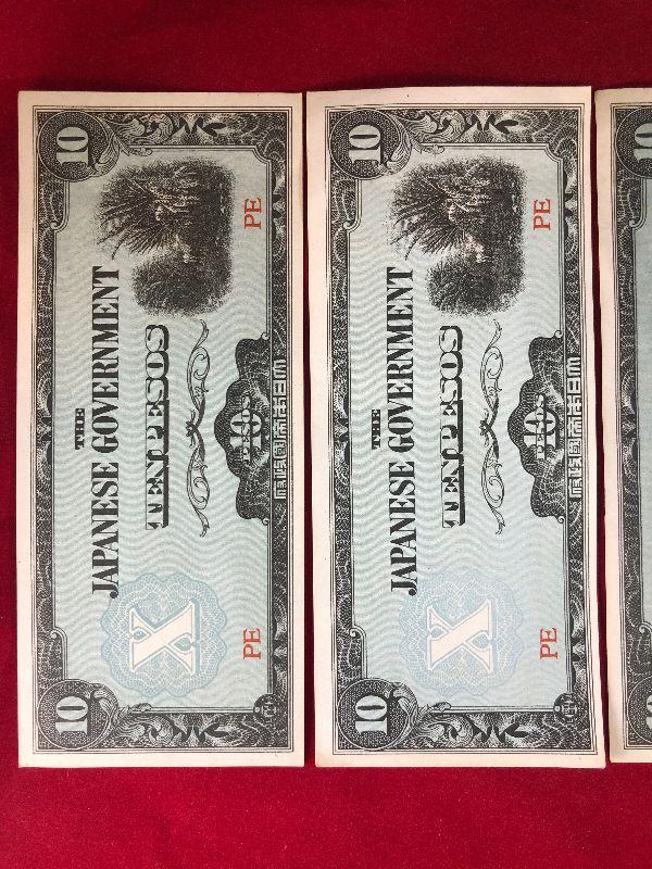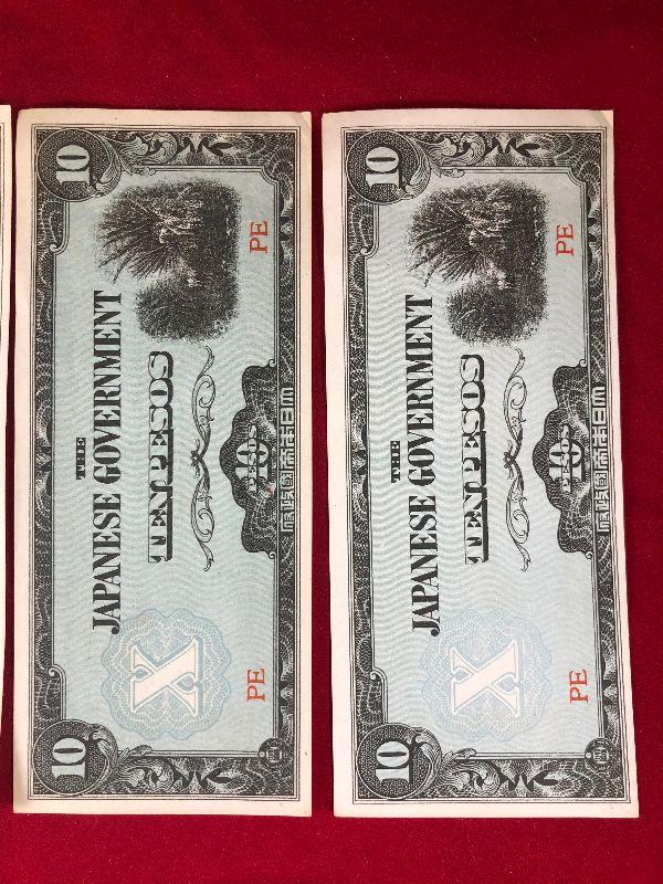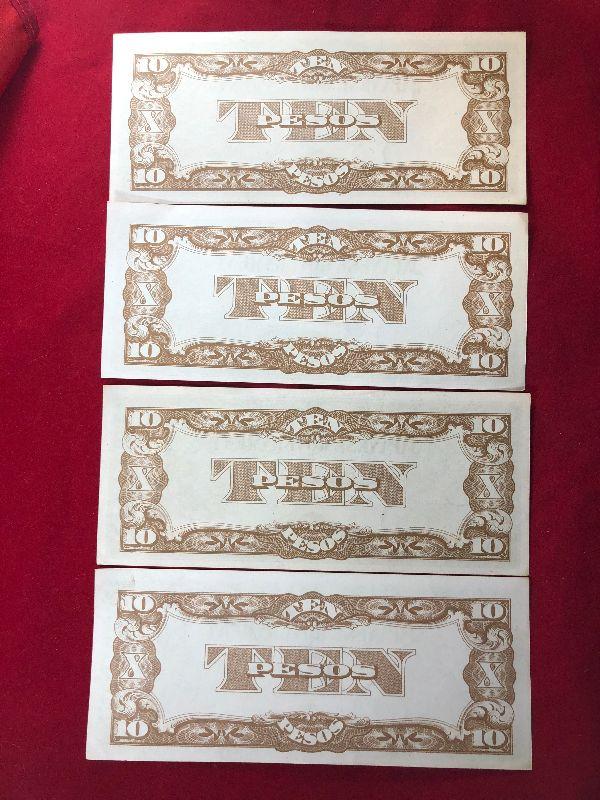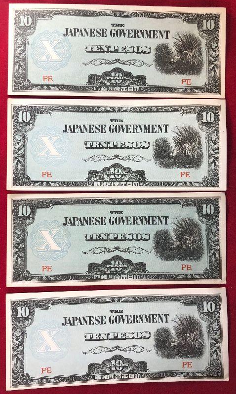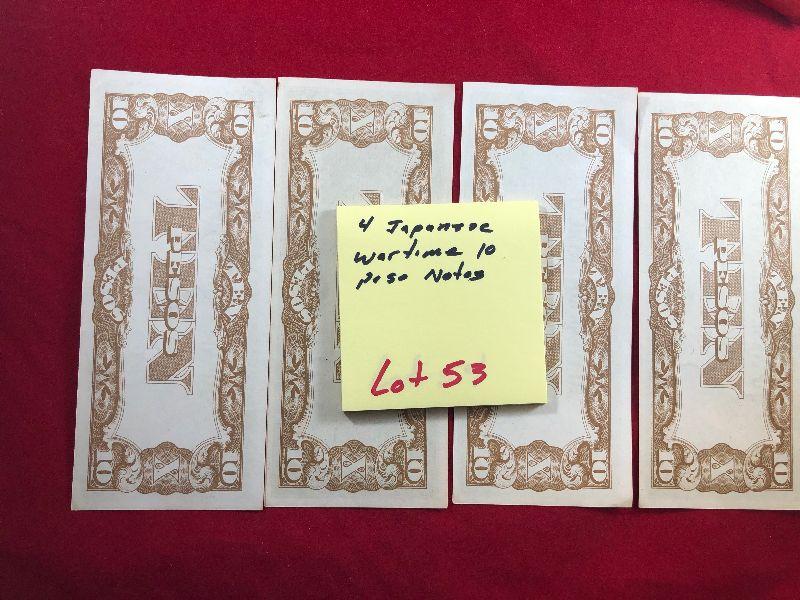 Lot #53- 4 Japanese 10 Peso Notes WWII Currency WW2