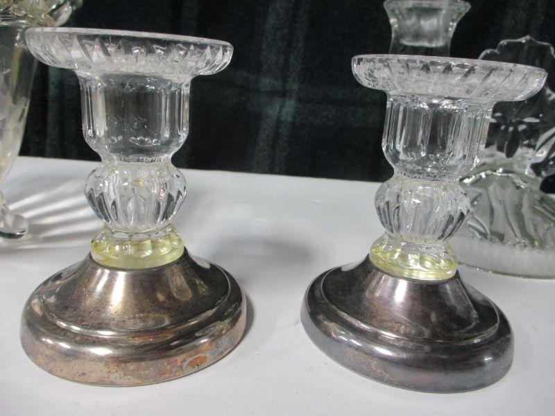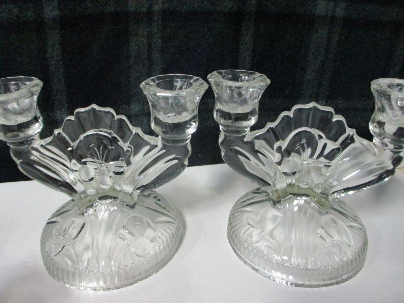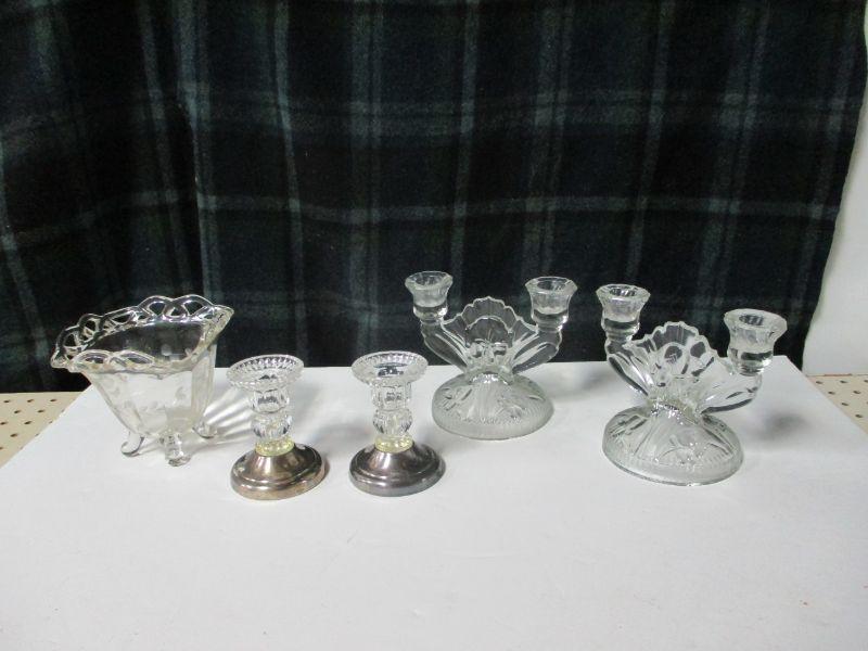 Lot 53 - Clear Glass Candle Holders & Decorative Bowl