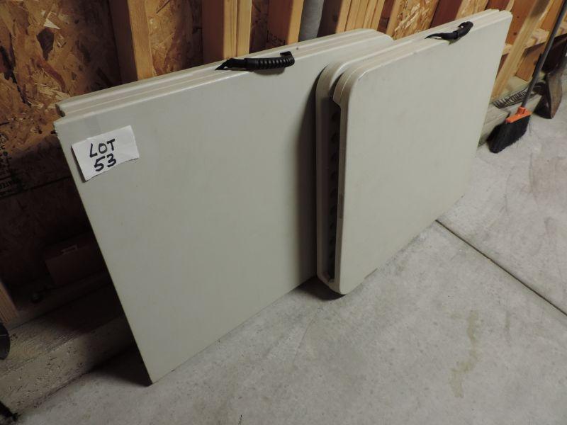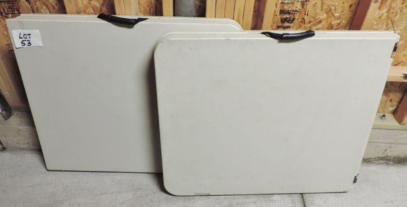 LOT 53  TWO HEAVY-DUTY PLASTIC FOLDING BANQUET TABLES