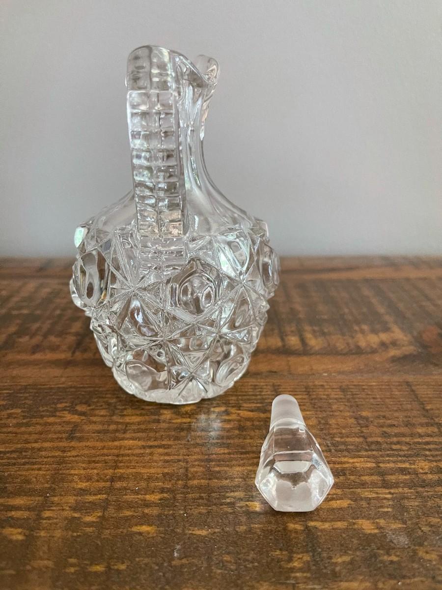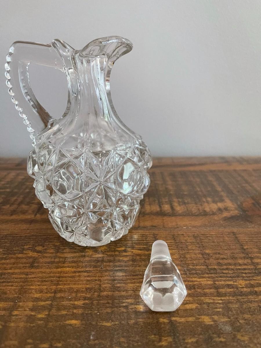 LOT 70 - America Cut Glass Trio of Liquid Serving Vessels, Oil Cruet, Creamer and Small Pitcher.