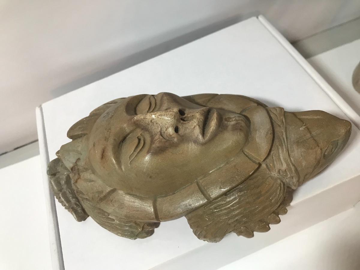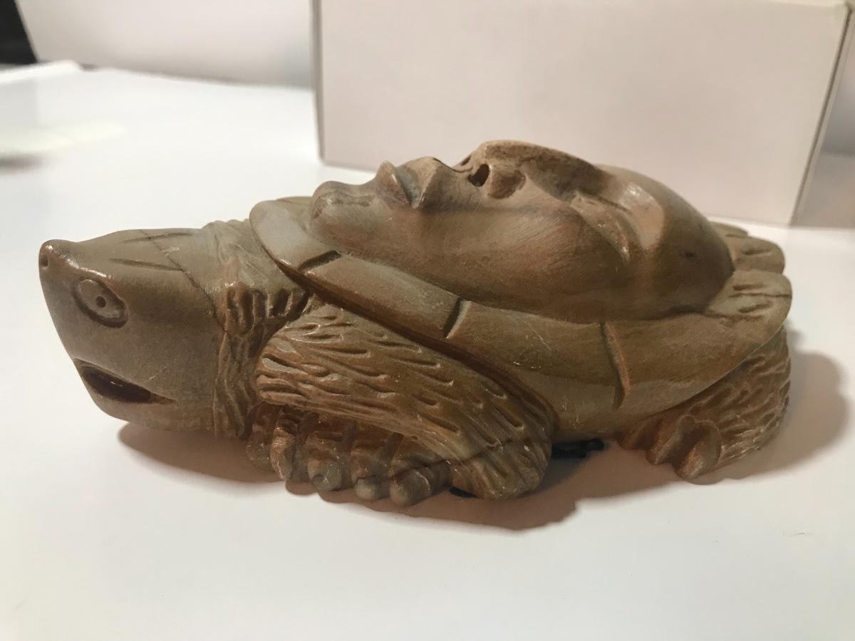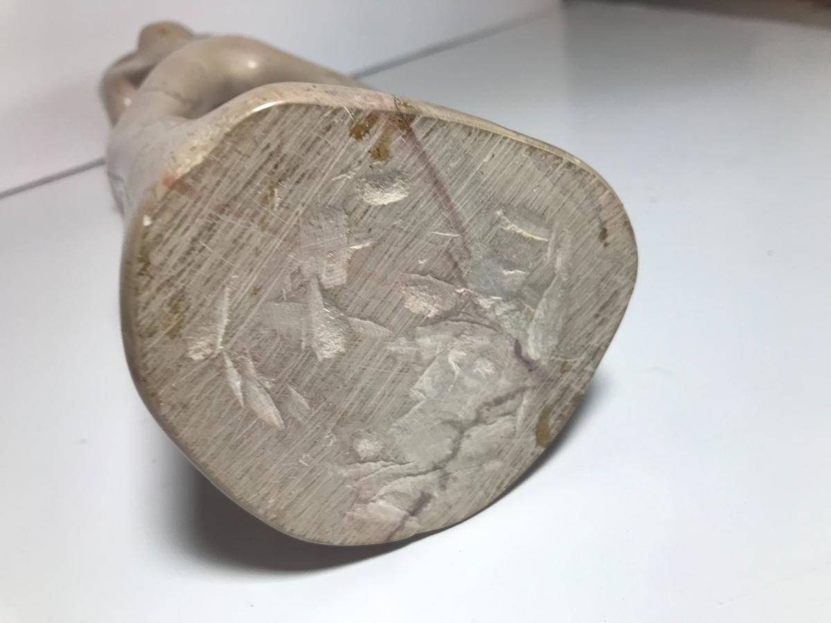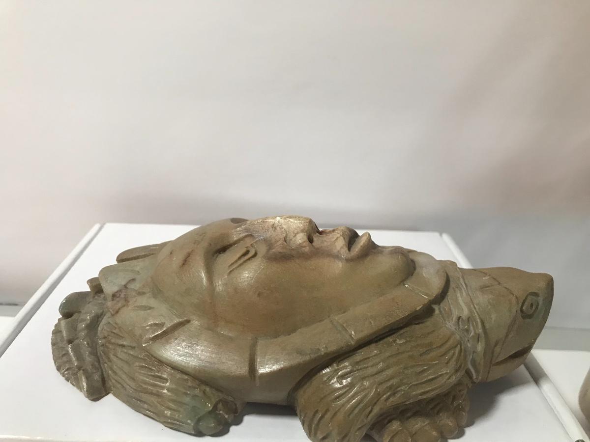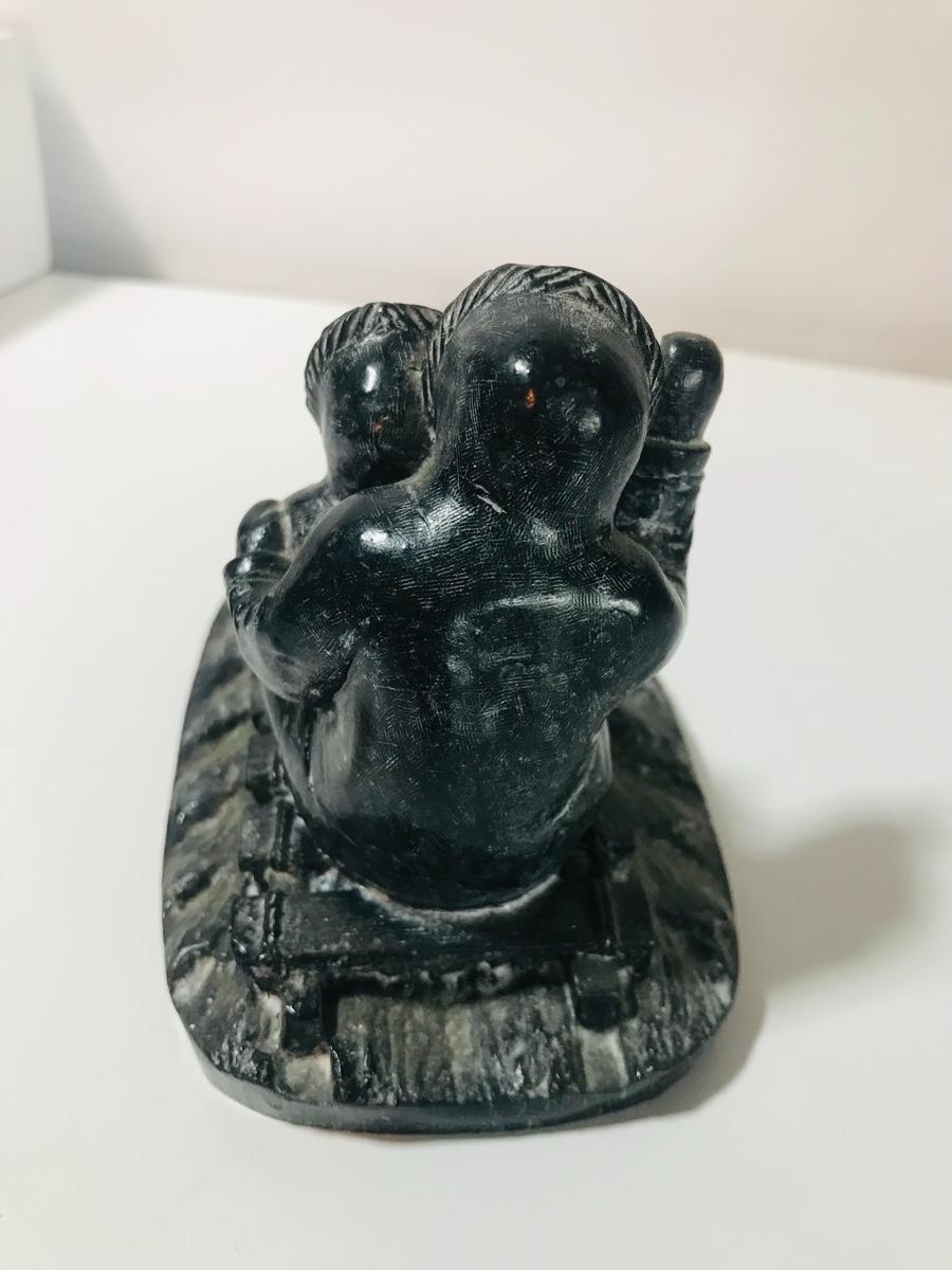 Inuit couple on sled, a wolf with human babies, statue of David, a face carving of Inuit man, and a graceful dancing trio. The pictures show condition, measurements if taken, and what is included in the lot. Due to the large amount that we photograph and the time frame, we are not always able to take measurements. All items unless noted, are pre-owned and have been used. If you purchased furniture, you must bring help. We do not allow one person to carry large furniture out on their own. Bring help, tools and a truck for the safety of our client’s homes, and your personal safety. Company policy. Thank you.