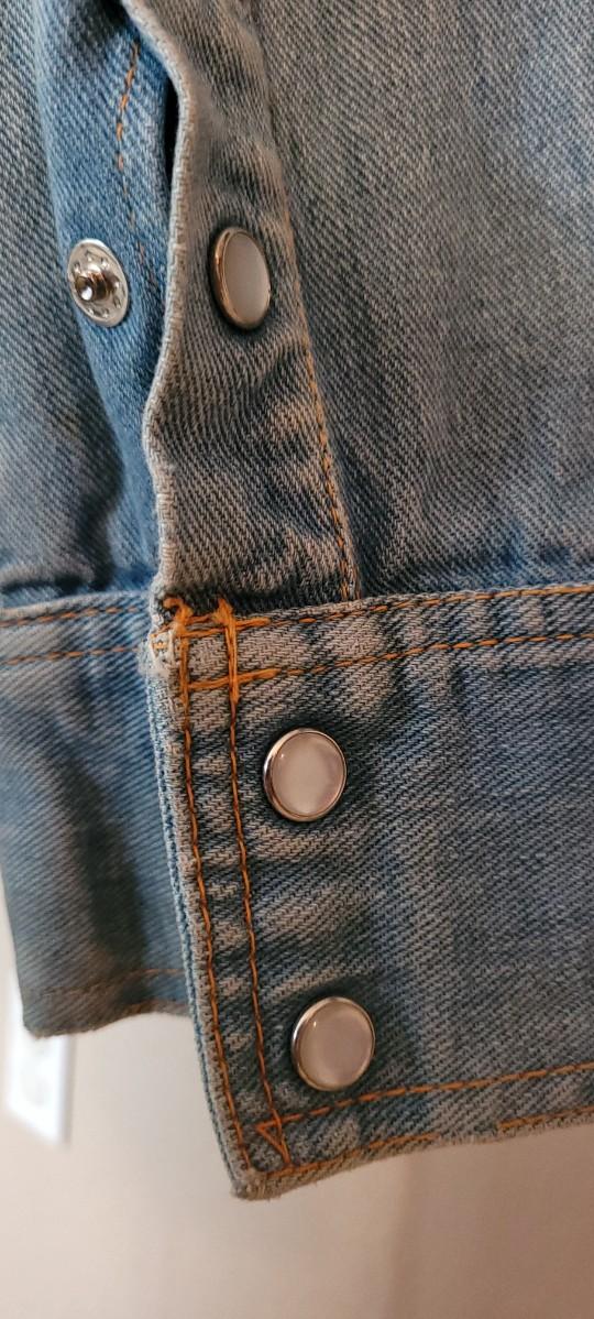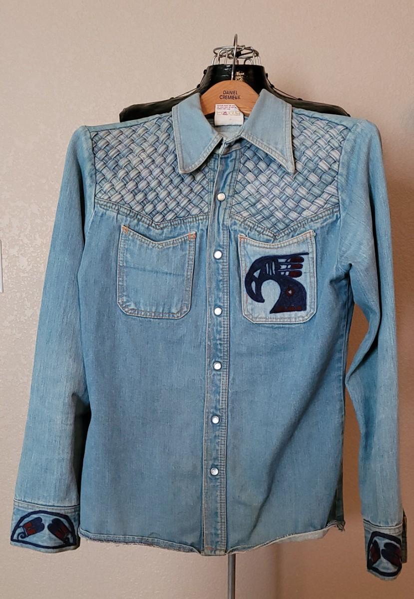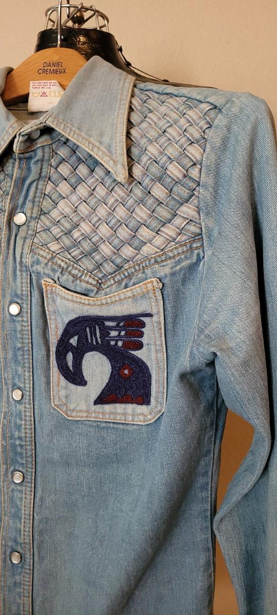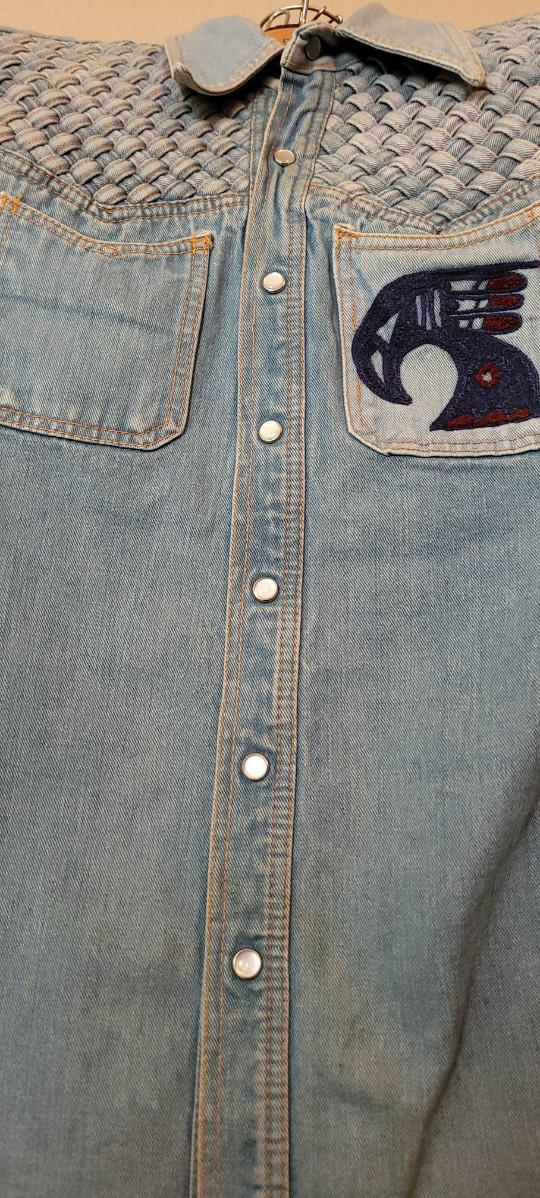 Lot 53: Vintage Denim Pearl Button Shirt w/ Hand Embroidered Accents