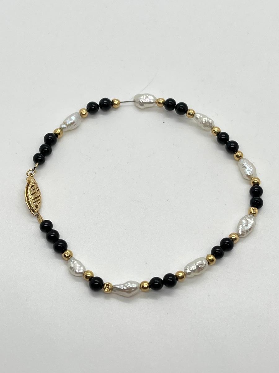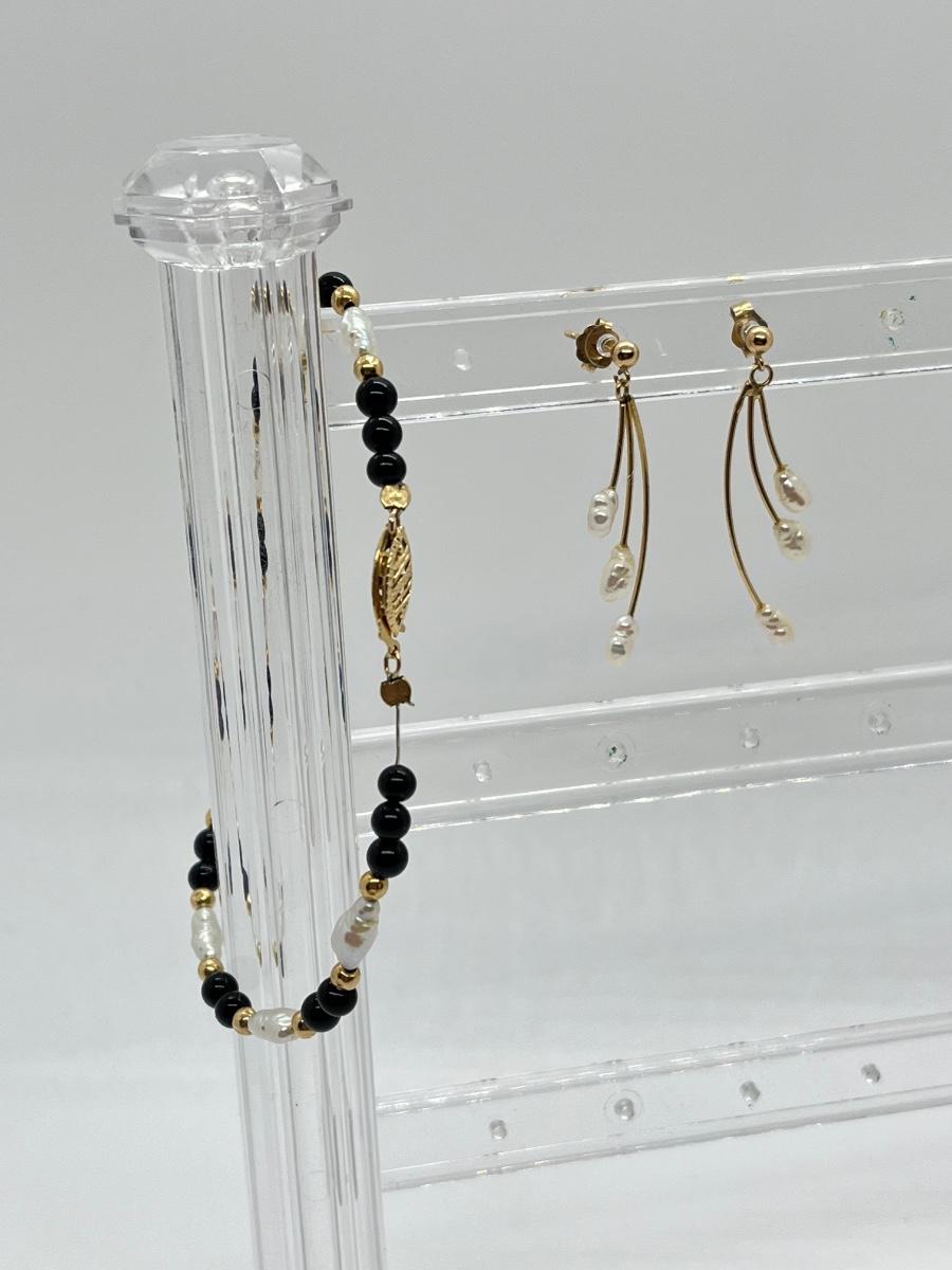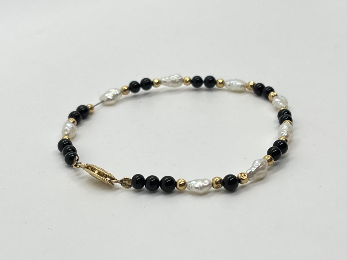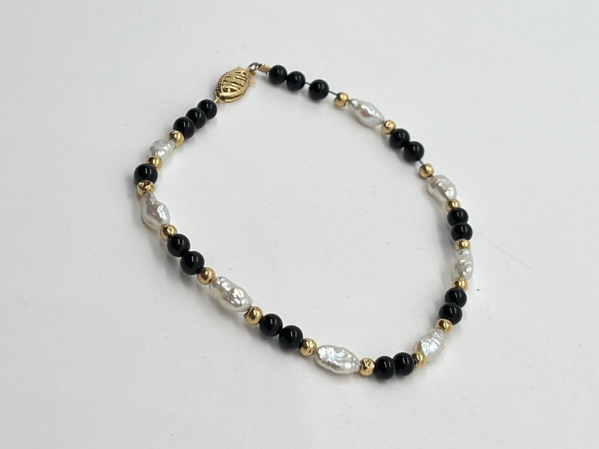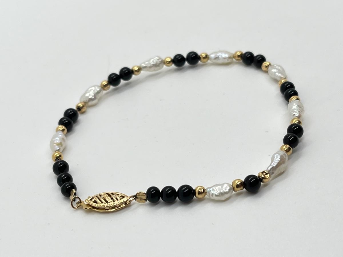LOT 53: 14K Gold & Freshwater Pear Earrings (1.4 gtw) + Freshwater Pear & Black Coral 8" Bracelet with 14K Gold Clasp
