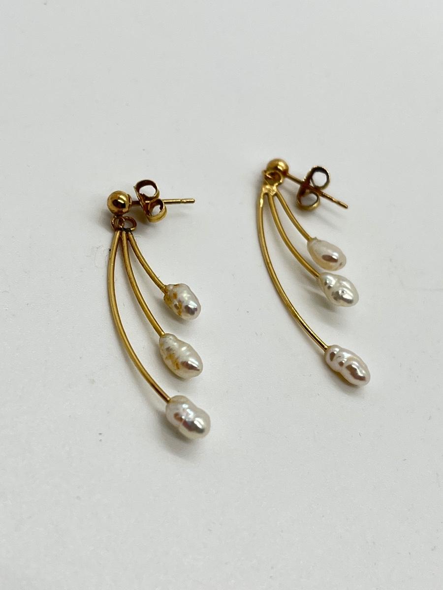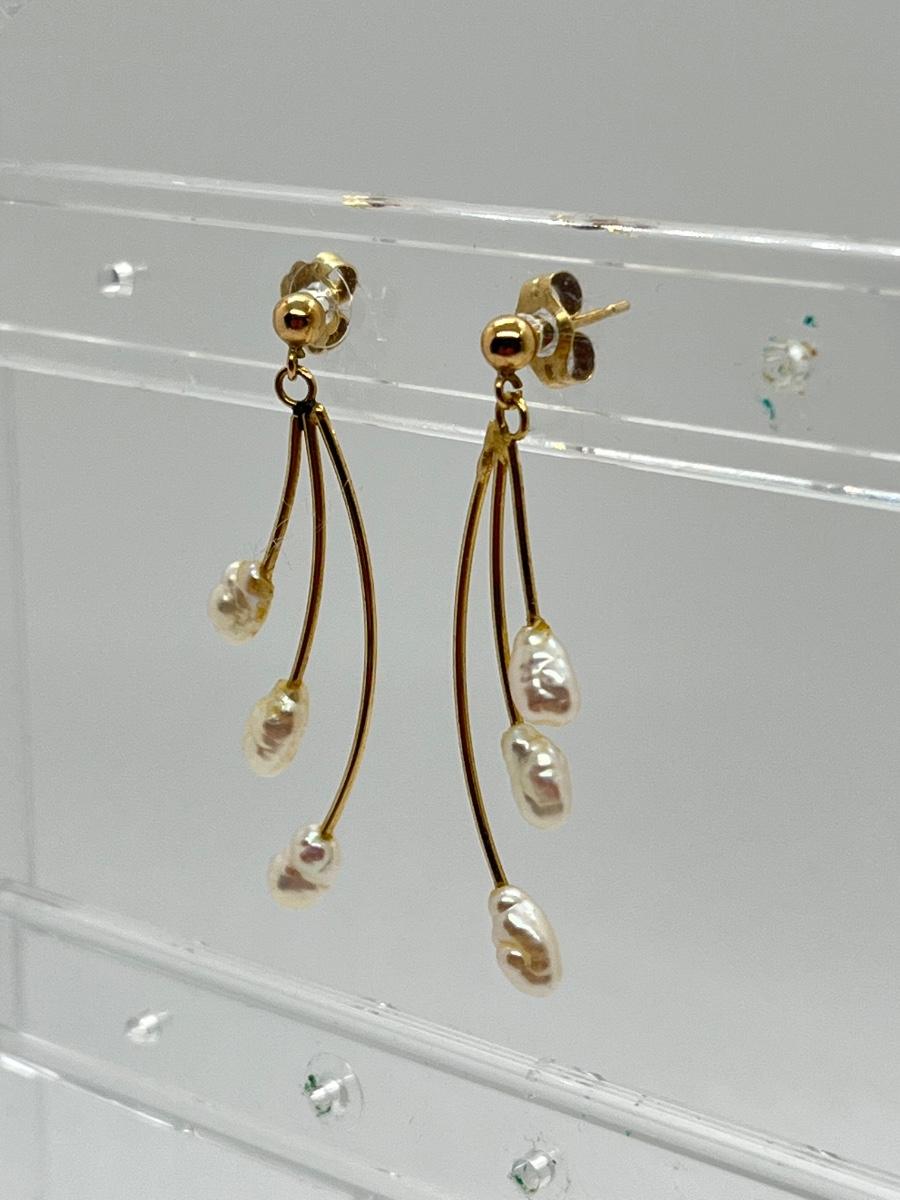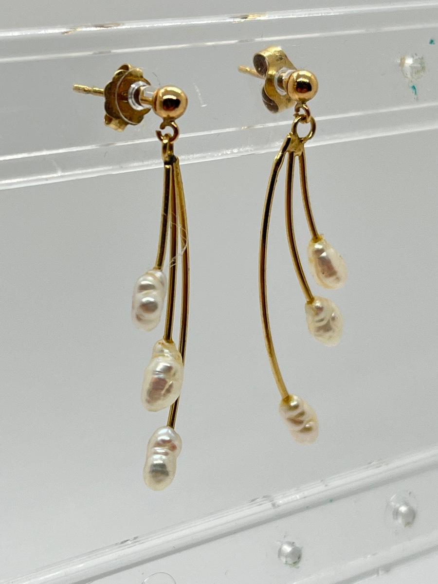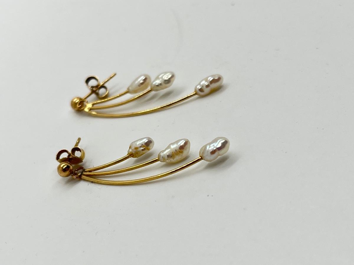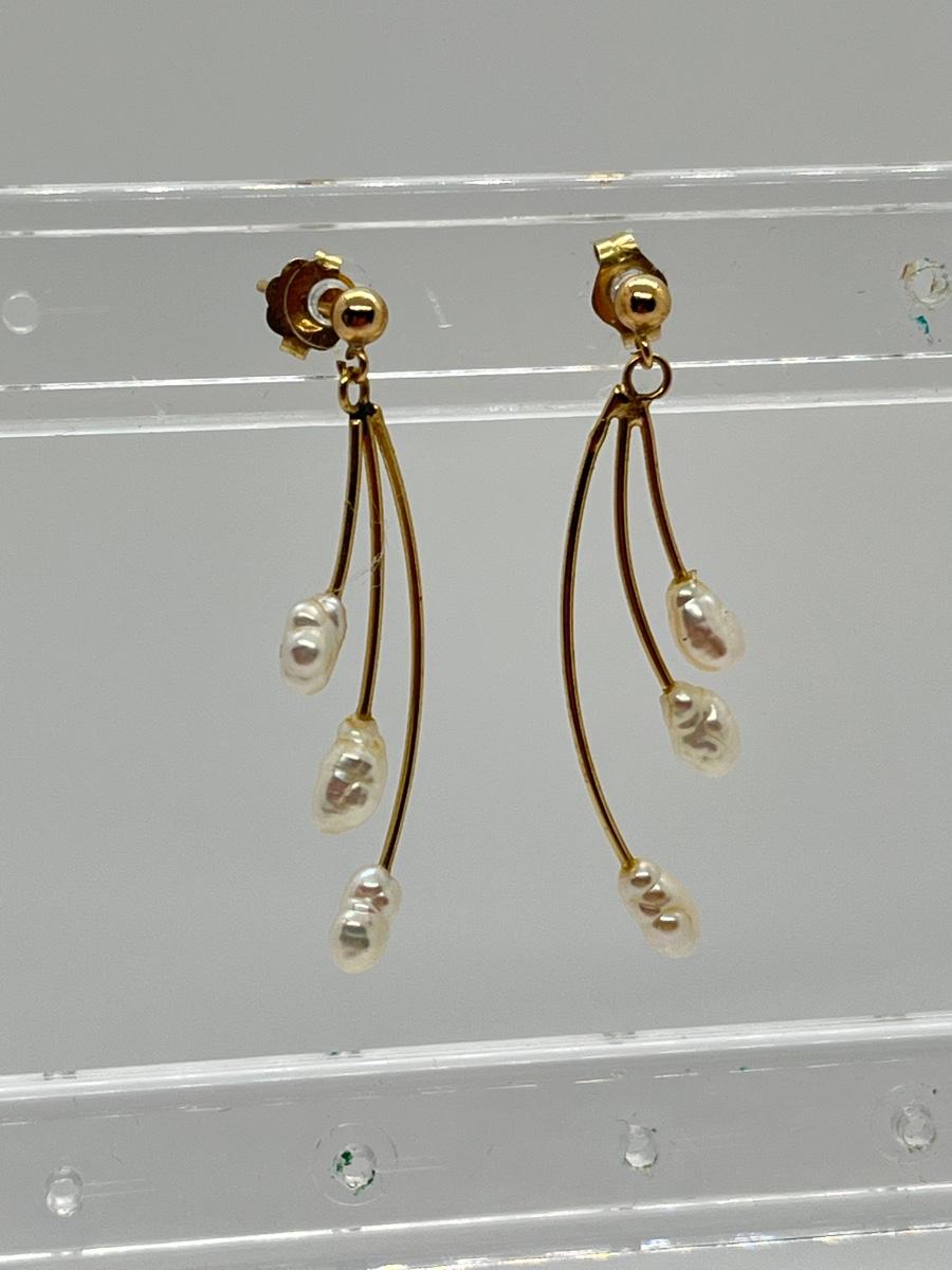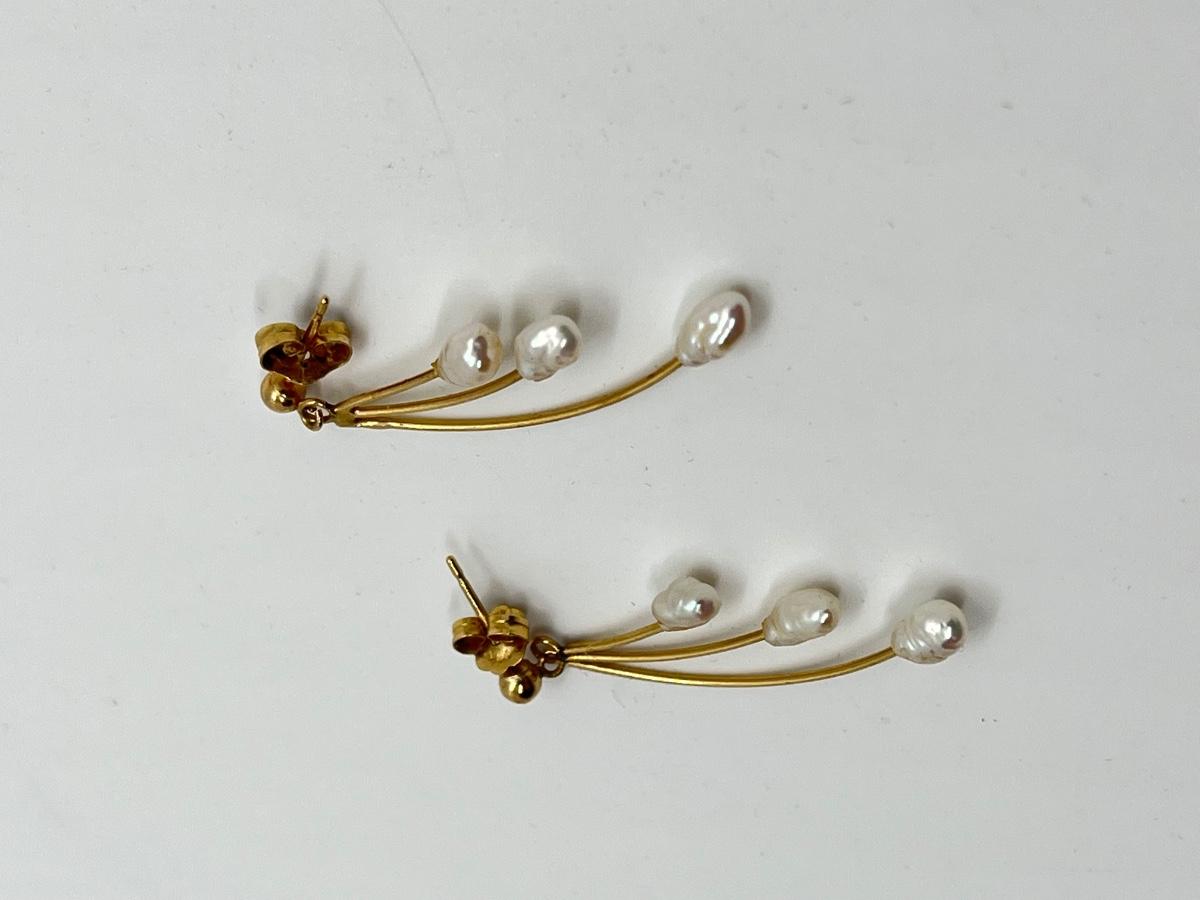 LOT 53: 14K Gold & Freshwater Pear Earrings (1.4 gtw) + Freshwater Pear & Black Coral 8" Bracelet with 14K Gold Clasp