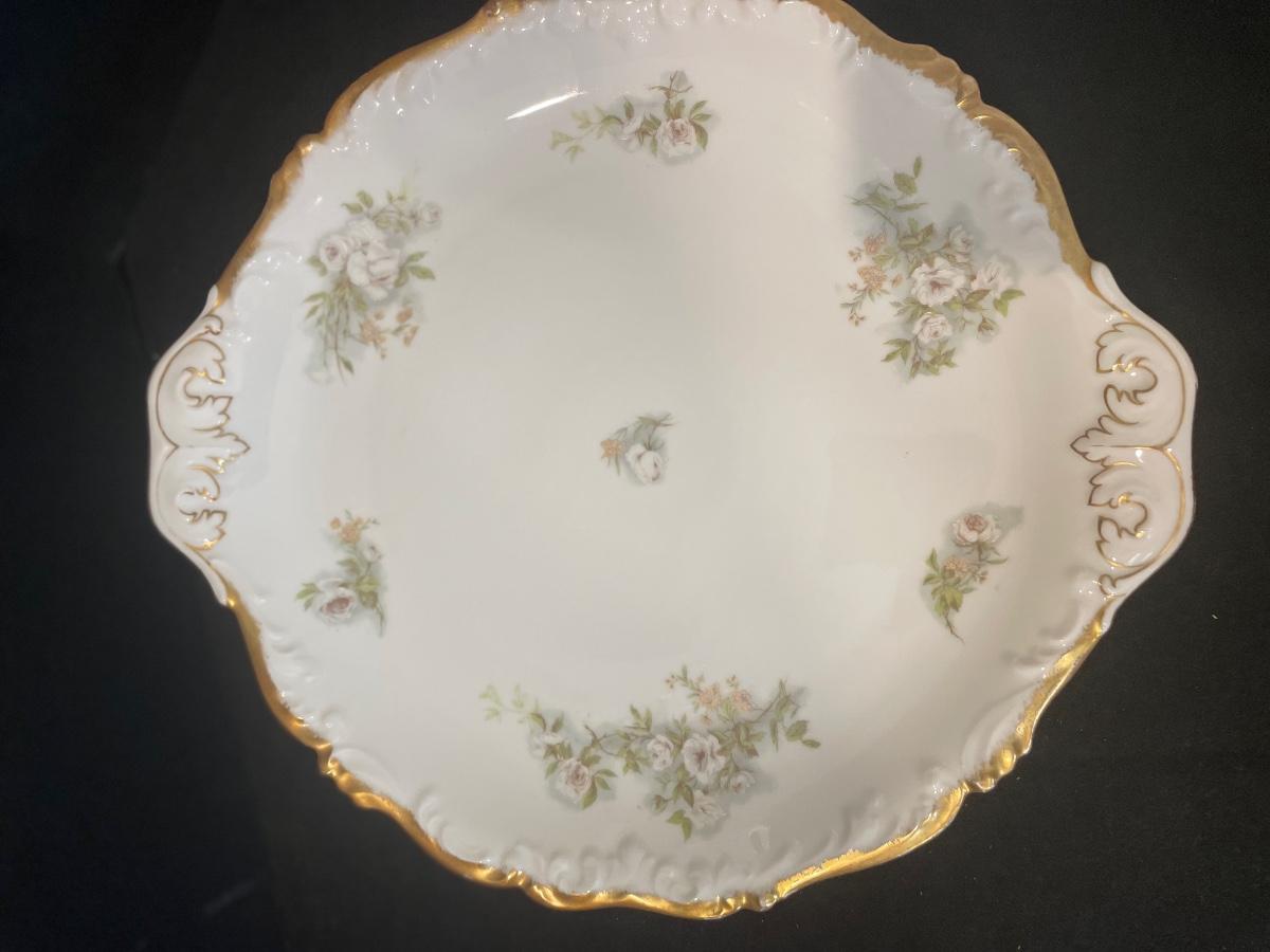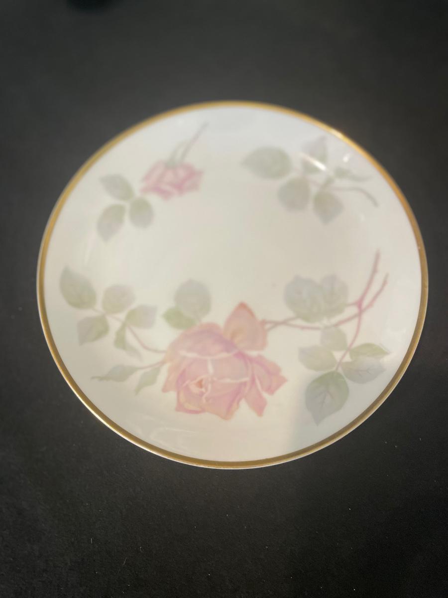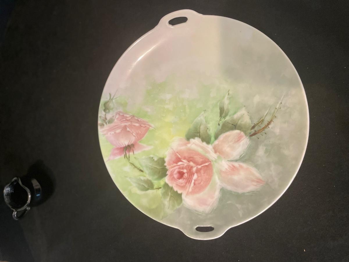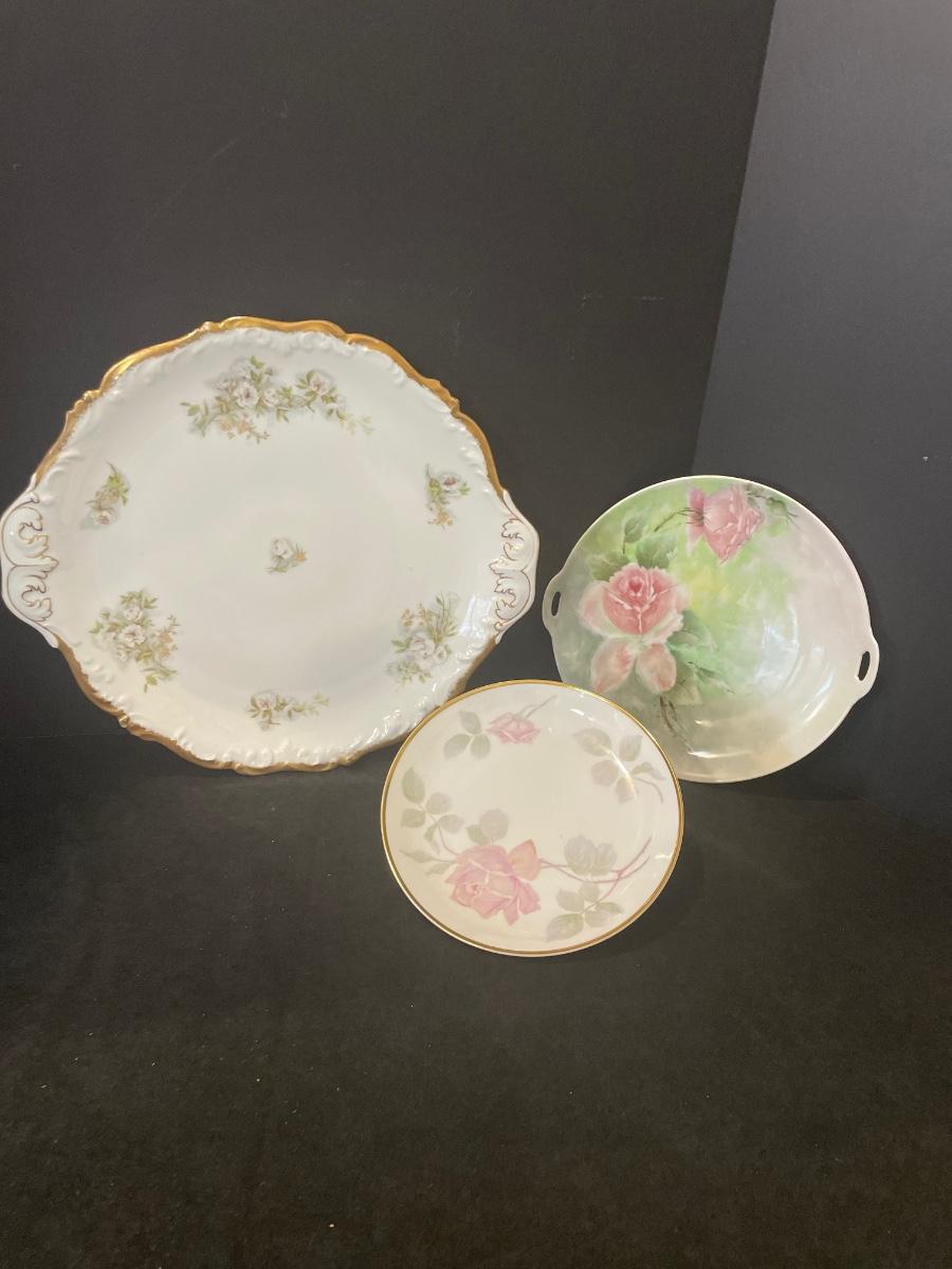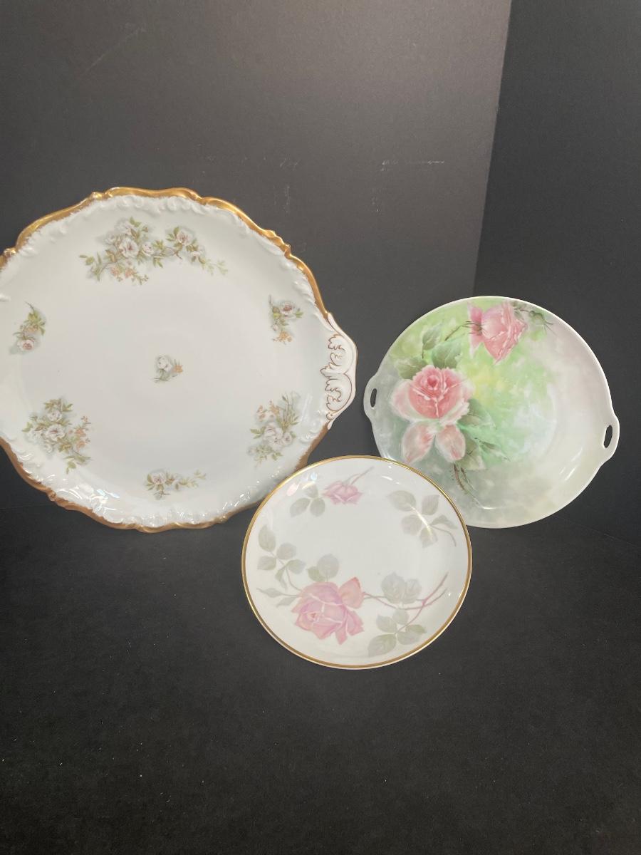 3 Porcelain Plates/trays. Selb Bavaria Rosenthale small rose plate, Silesia porcelain floral middle size plate/tray, Tressermann & Vogt made in France large floral plate/tray.