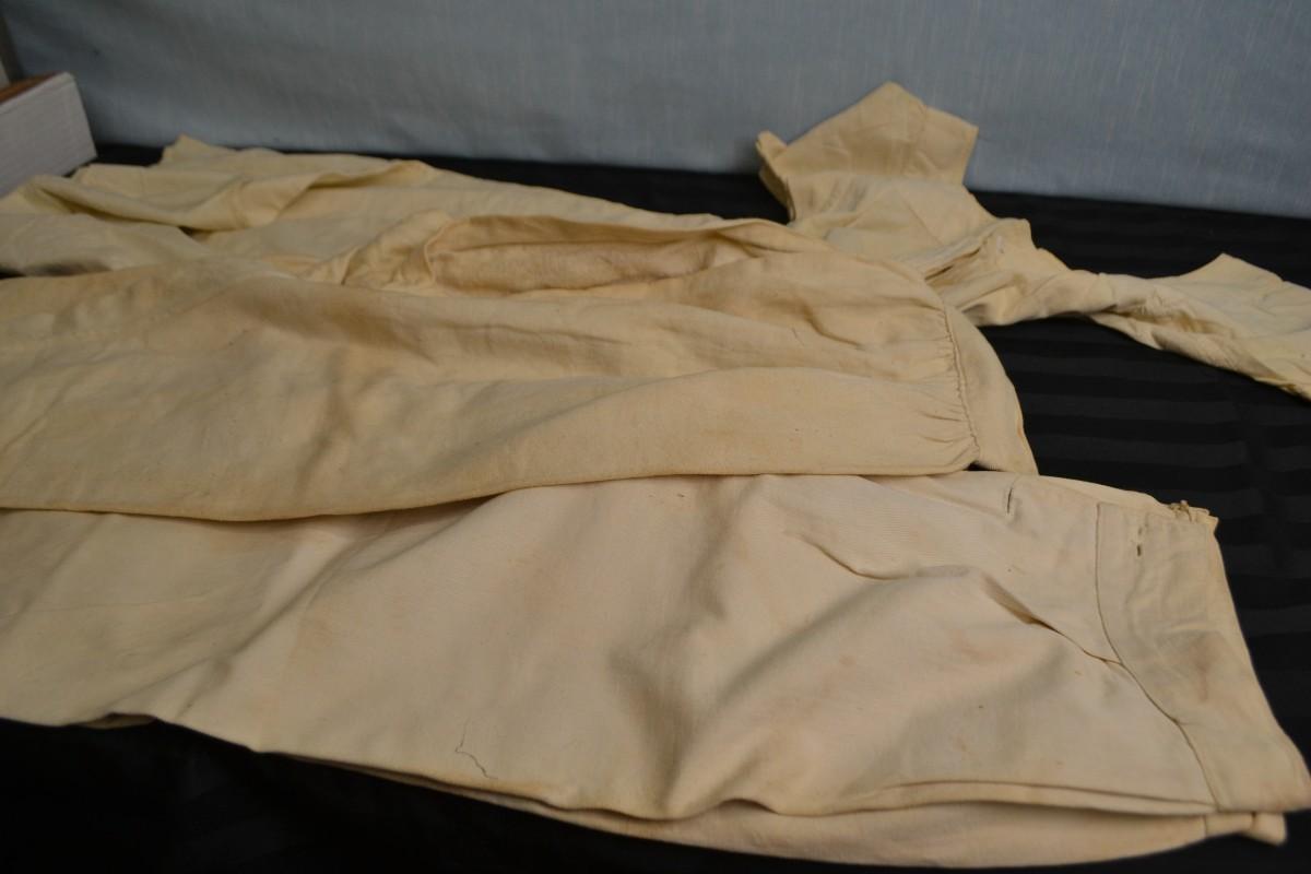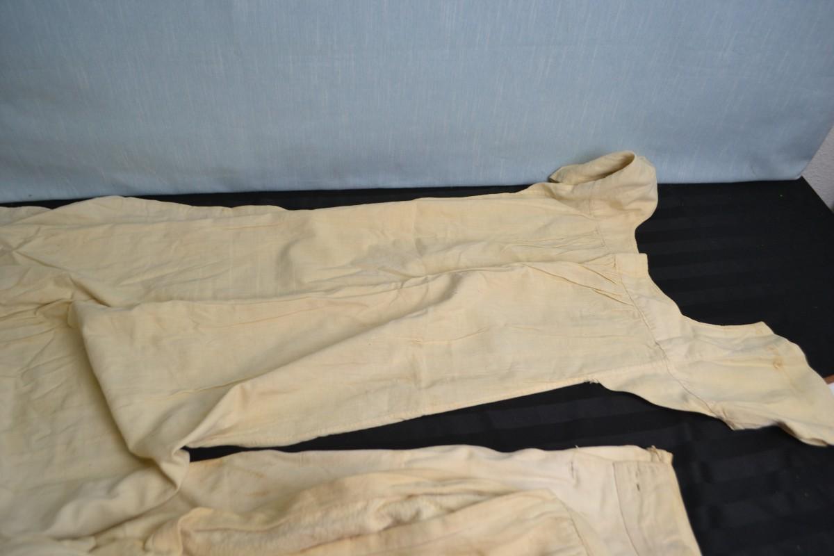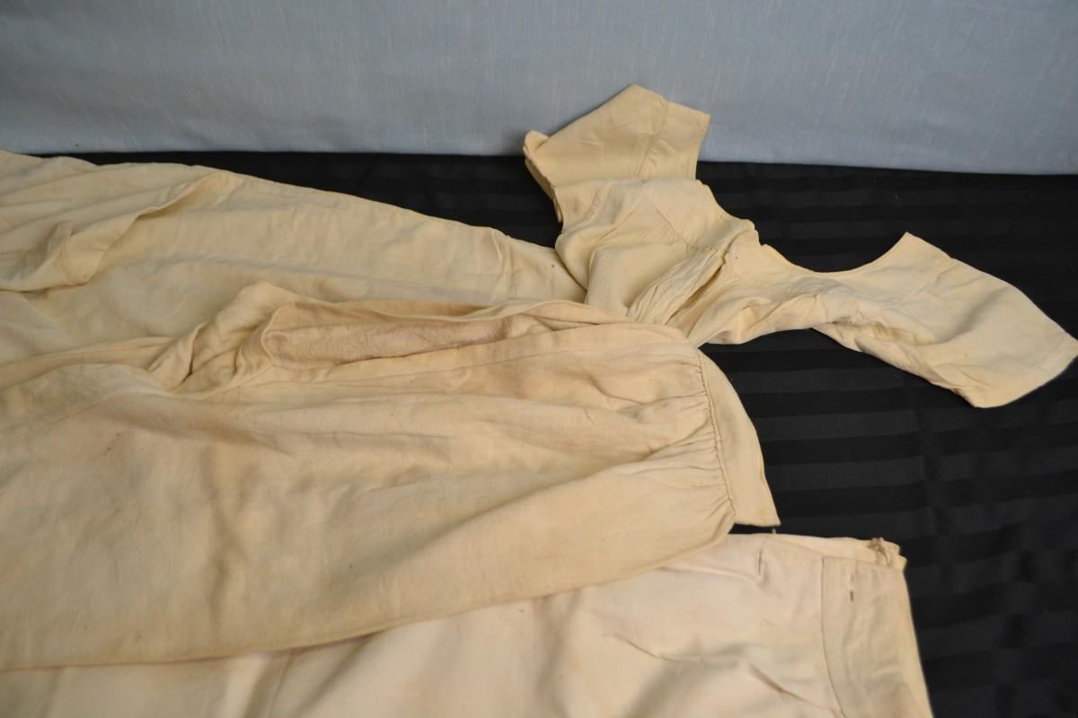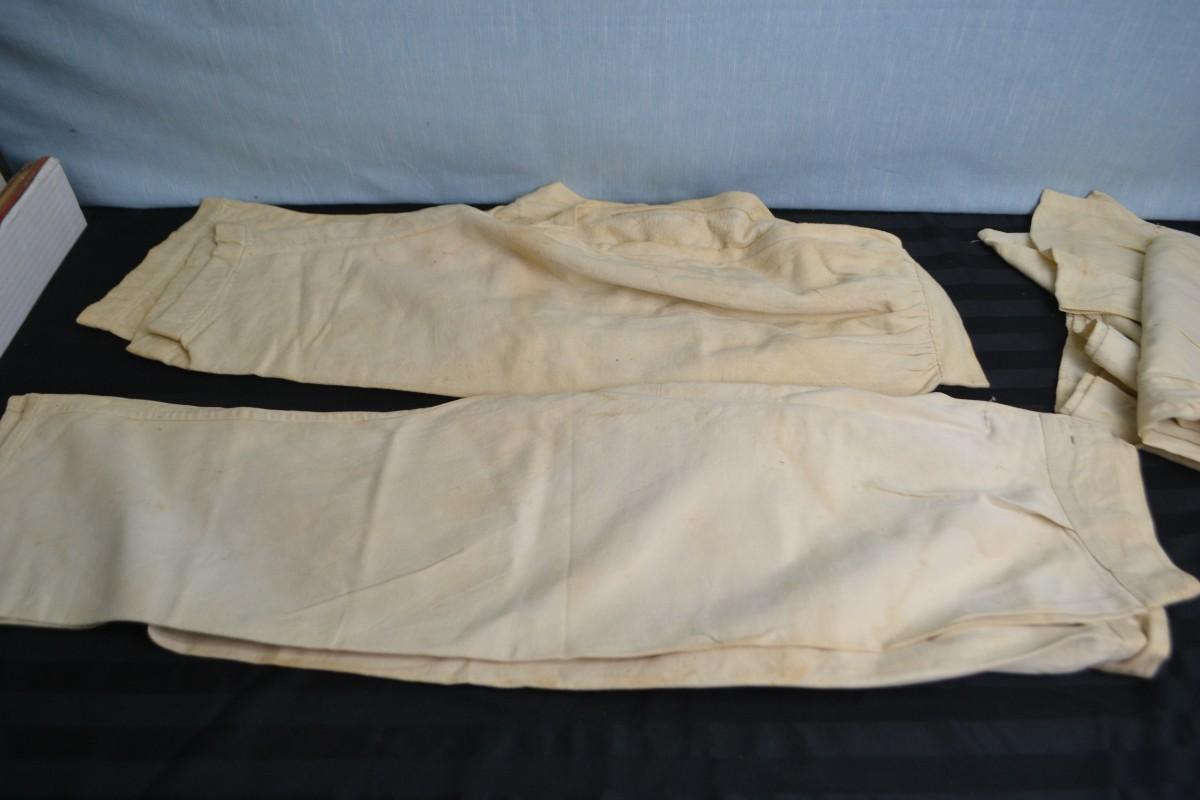 LOT 53. TWO ANTIQUE PANTS AND ONE DRESS