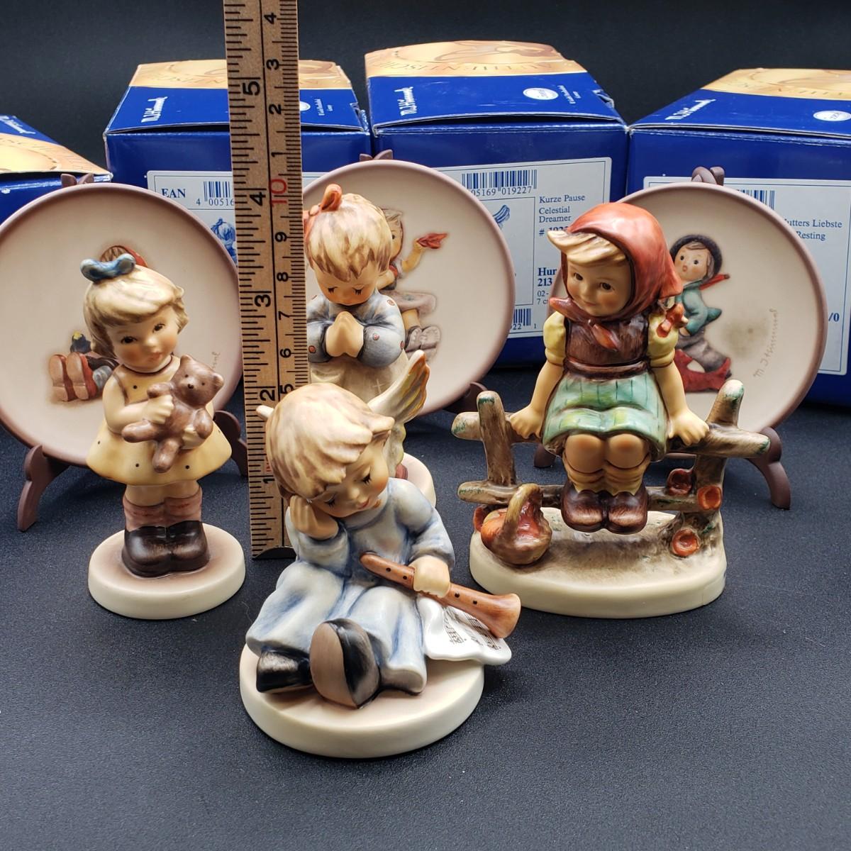 LOT 403: Assortment of Hummel Figurines and Mini Collector Plates with Original Boxes; First Issue; Goebel Germany