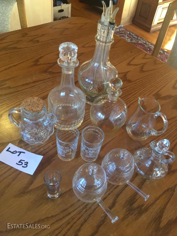 Lot 53  - Bar glass decanters, shot glasses and small pitchers