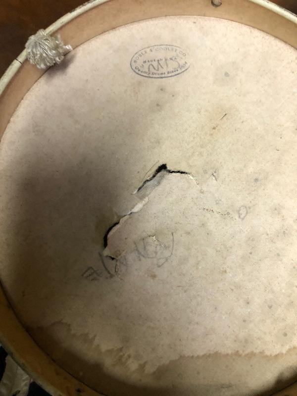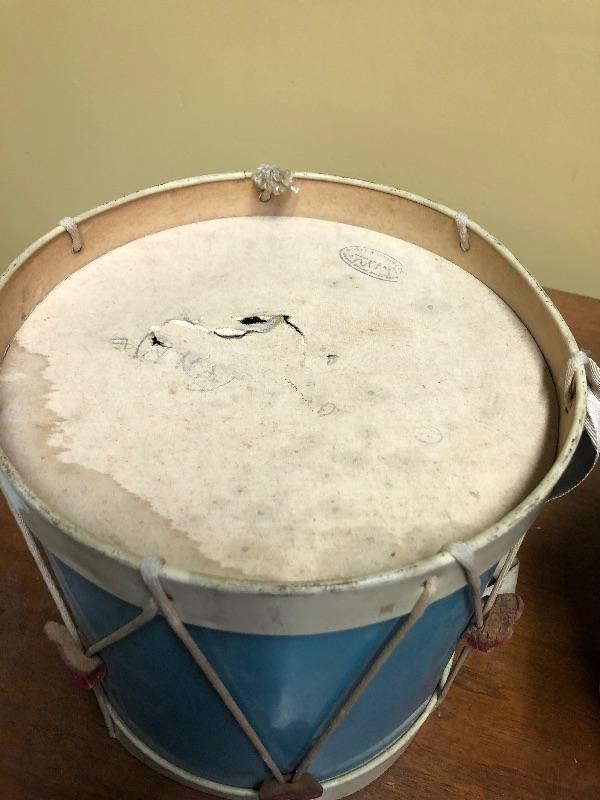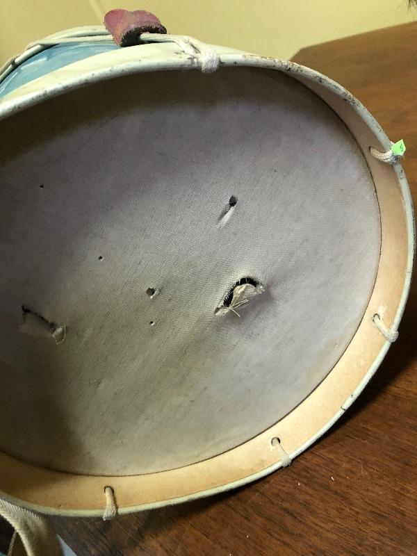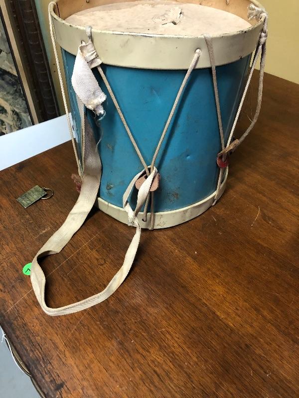 Drum and mannequin head: Vintage used condition, drum has a tear in the top.