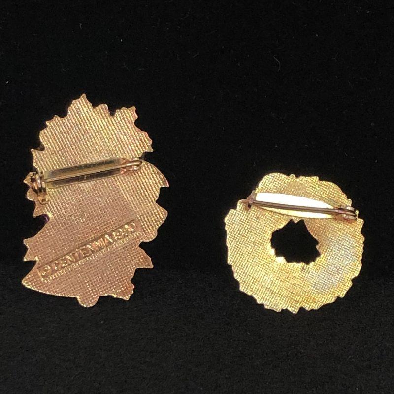 These brooches are in excellent condition and the one stamped "Centennial 1980" is just about 1.5" long and the unmarked brooch is about 1".