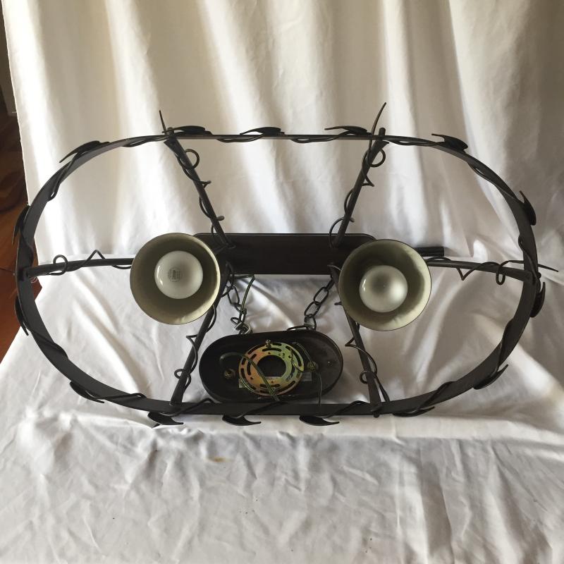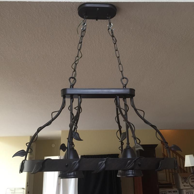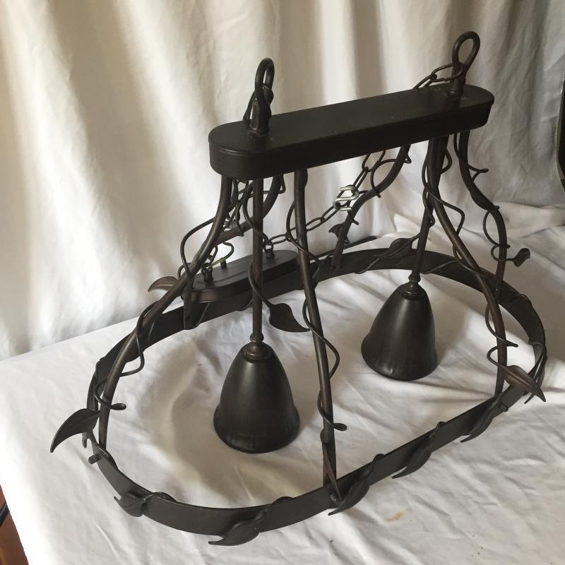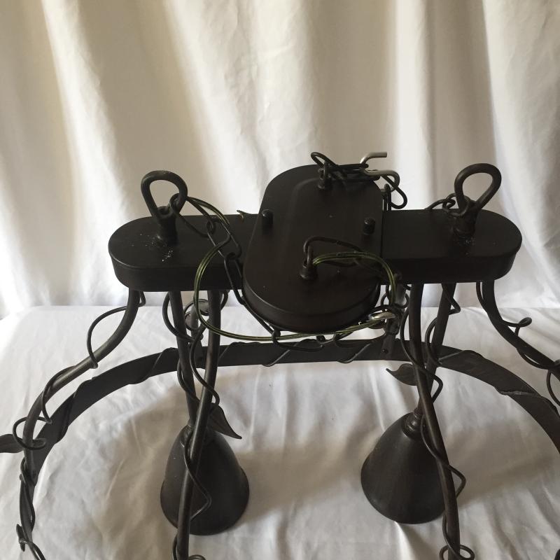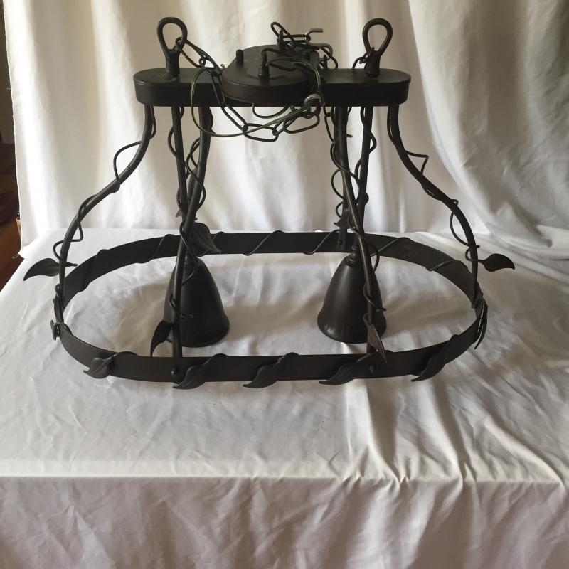 Captivating hanging light fixture. Enhance any room in your house with this light fixture with vine design. Fixture measures 15” x 28” x 20”. Chain measures 16” long.