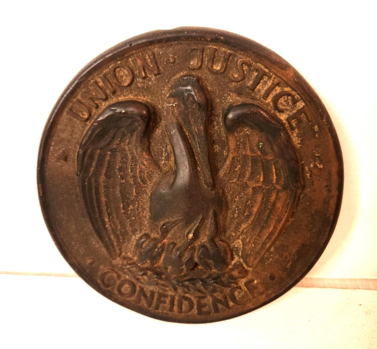 Lot #53 Heavy Vintage Metal "Union, Justice, Confidence" Seal of Louisiana
