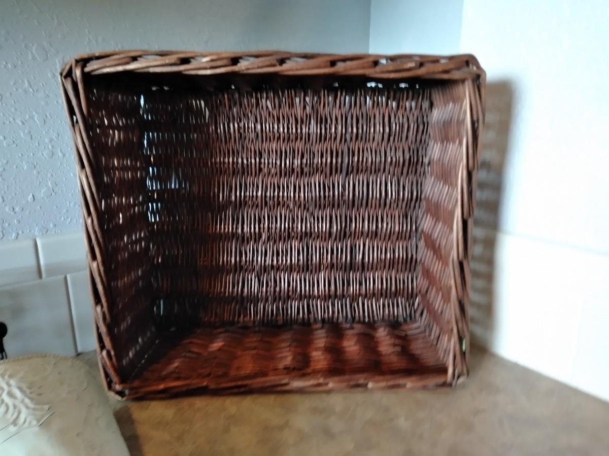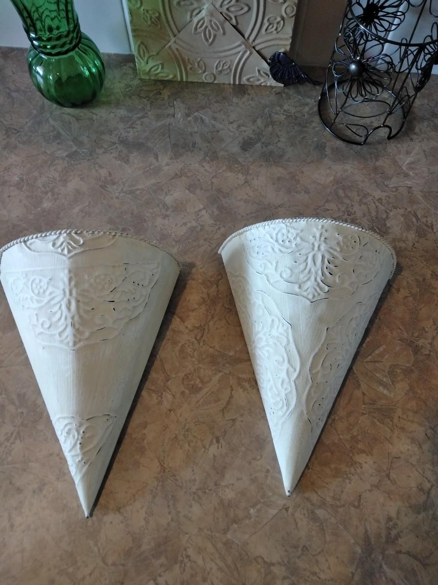 LOT 53 LARGE BASKET, METAL WALL POCKETS, VASE, AND CANDLE COVER