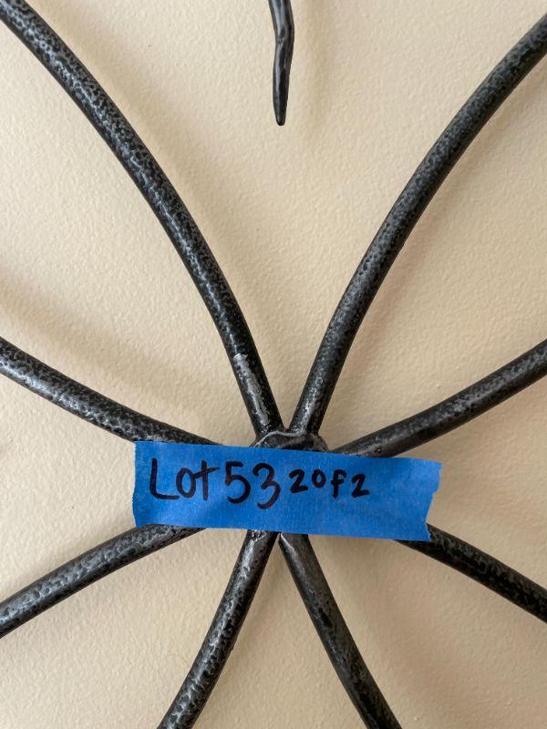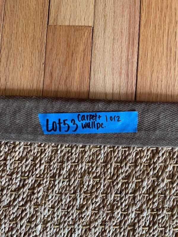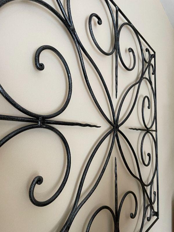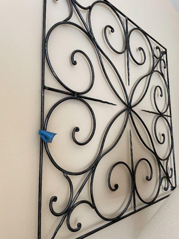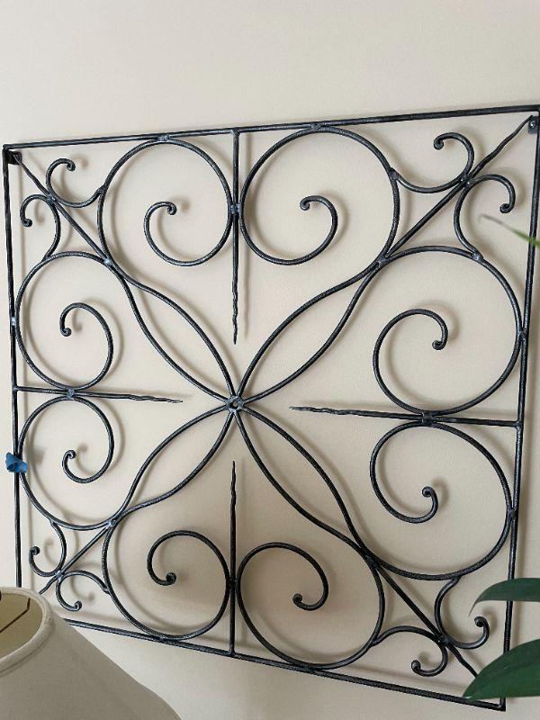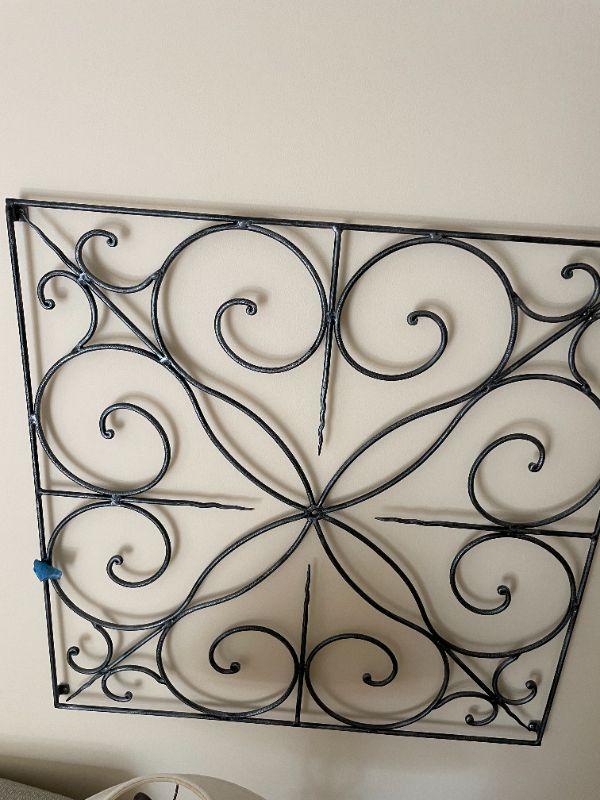 Lot 53 - Large square iron wall decor and large pottery barn carpet