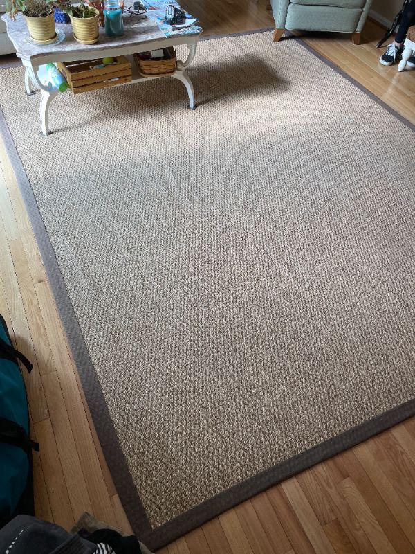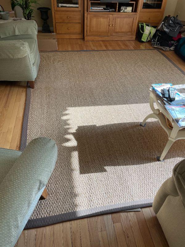 Large square iron wall decor and large pottery barn carpet ( 10' L x 8' W).
