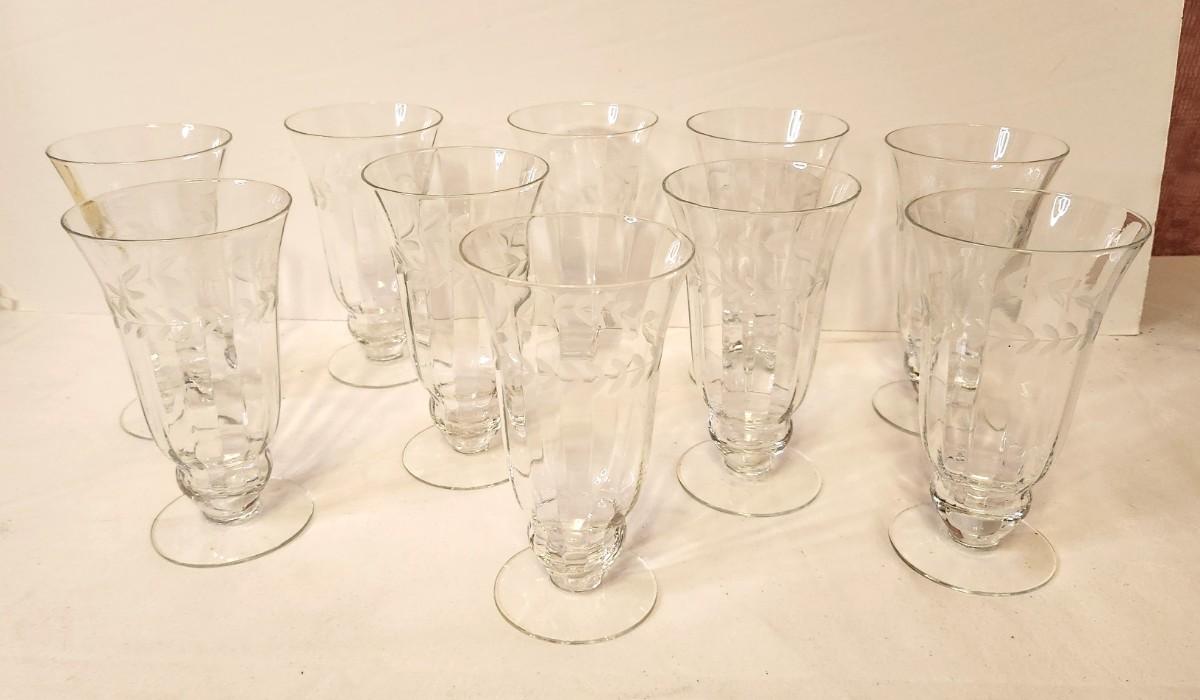 Lot #53 Lot of 10 "Laurel" Footed Iced Tea Glasses