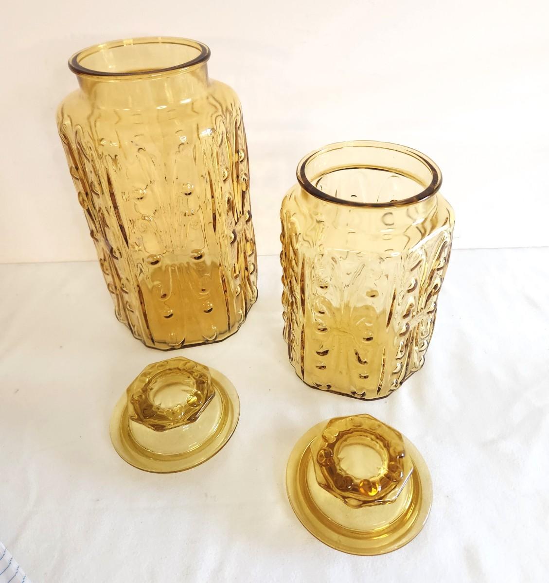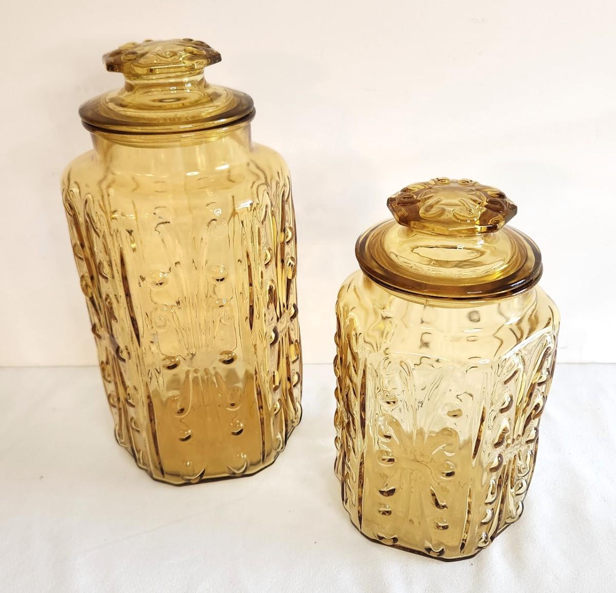 Lot #53 Lot of 2 MidCentury LE Smith Glass Canisters - Amber color