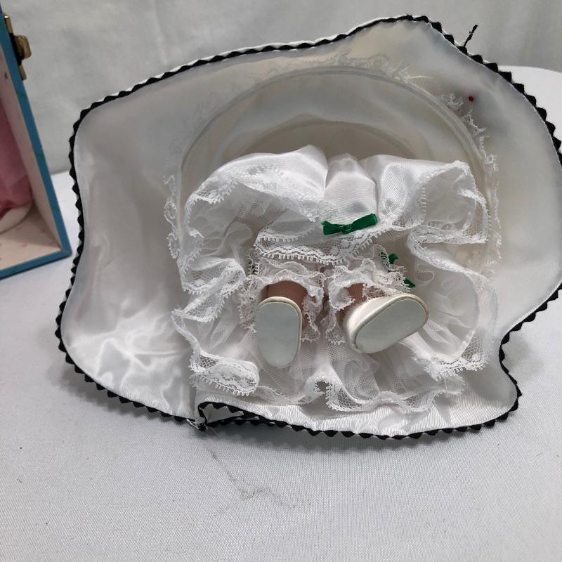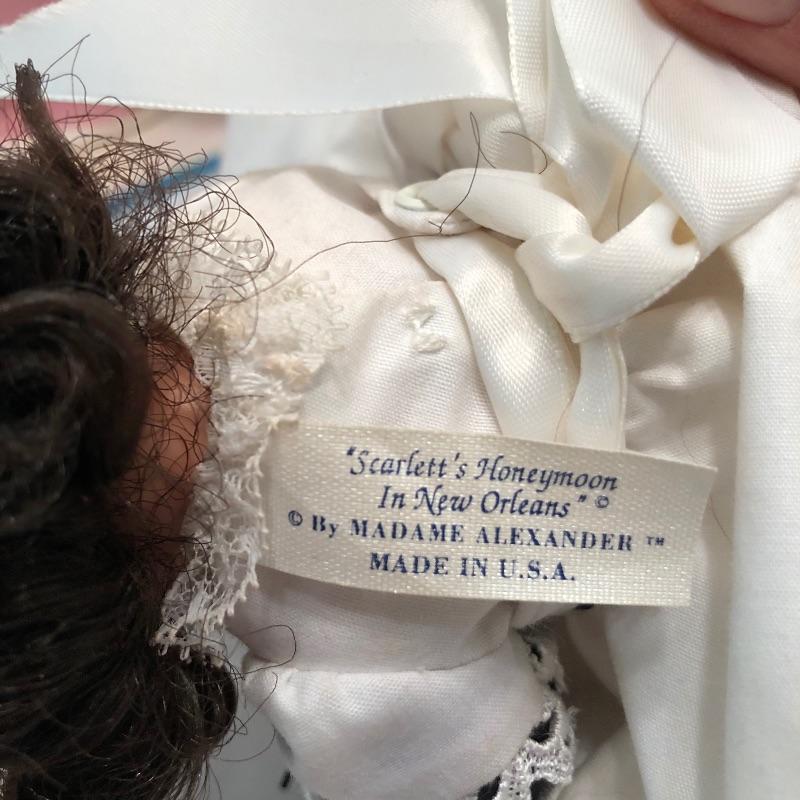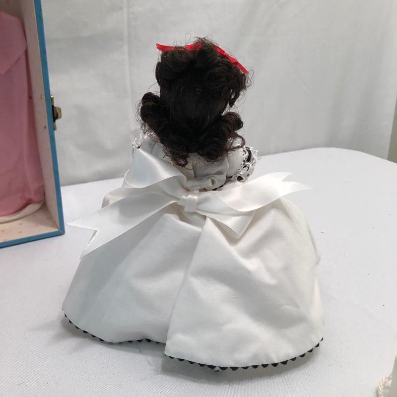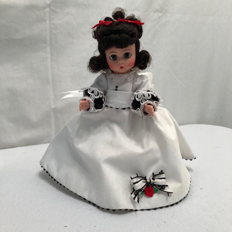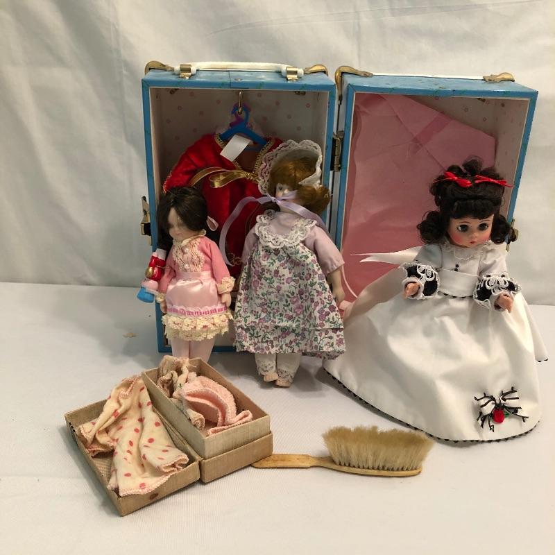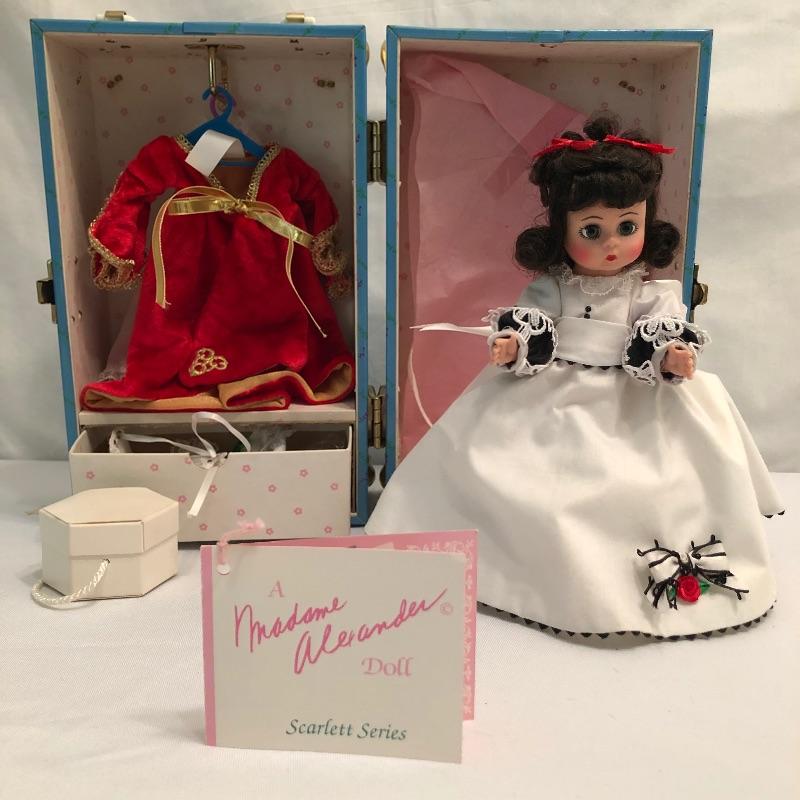 From the Scarlett Series, this Madame Alexander doll is an 8” doll named Scarlett, Honeymoon in New Orleans; she comes with a carry case, extra outfits and more, see images. We have added a mixture of other dolls and doll clothing and a small antique brush, again see images.