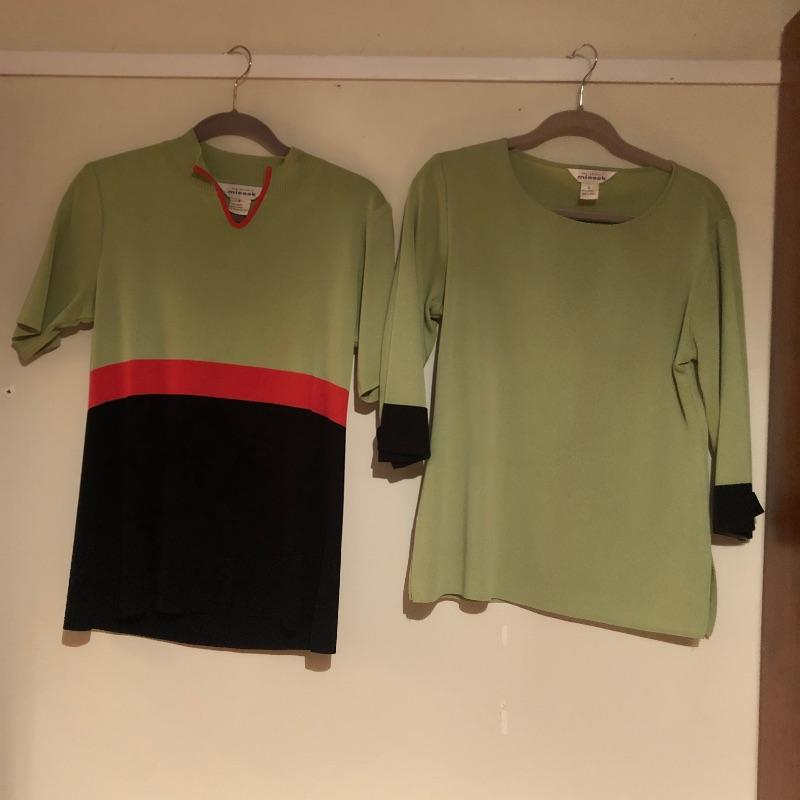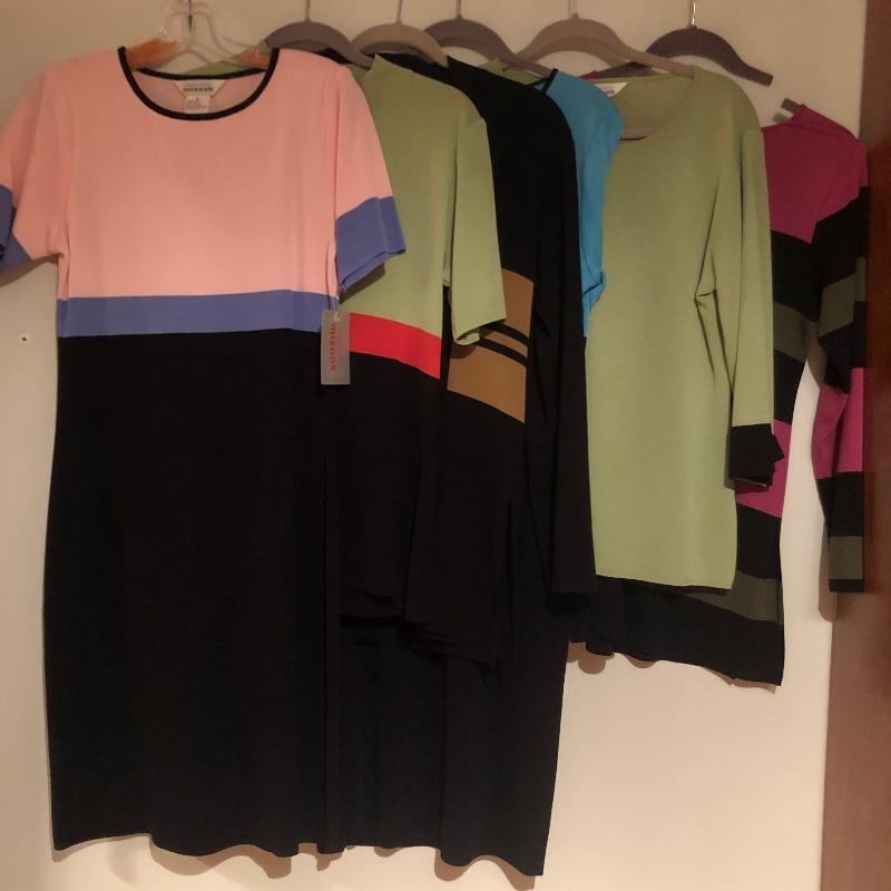 Be still the beating hearts of all you Size Small ladies out there, because this collection of Misook clothing is all in your size! In addition to these gorgeous dresses, two piece and tops are lots more comfort wear sweaters, pants and skirts. The Misook items are in great condition with the exception of some small stains on the shoulders of the pink dress which is new with tags, these stains are shown in images.