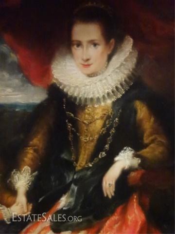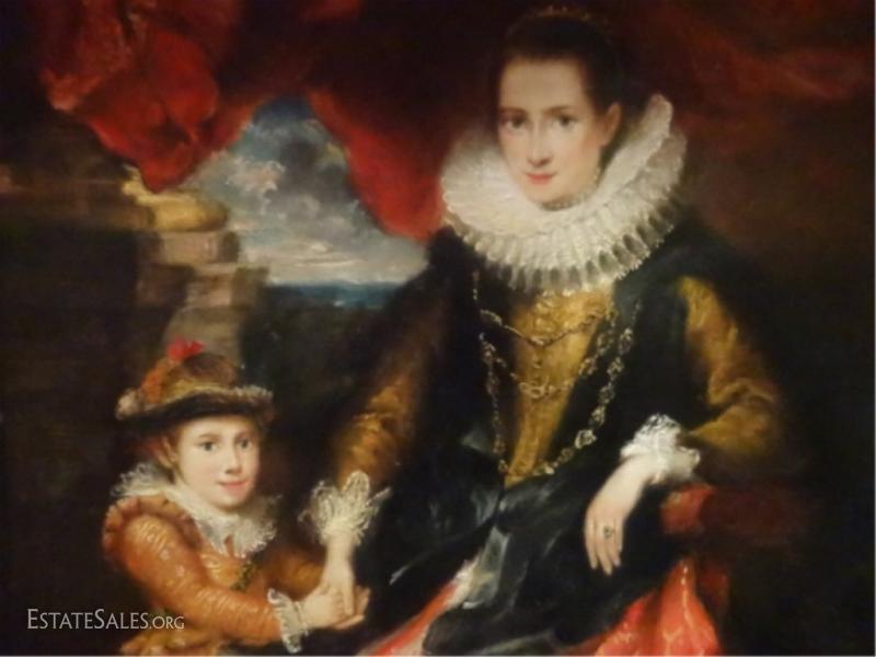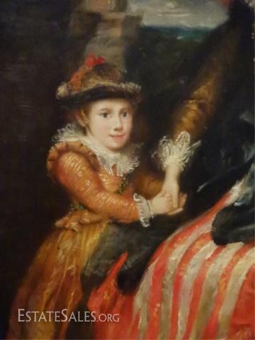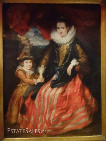 LOT 53: OIL ON BOARD PAINTING, ENGLISH NOBLE WOMAN AND CHILD