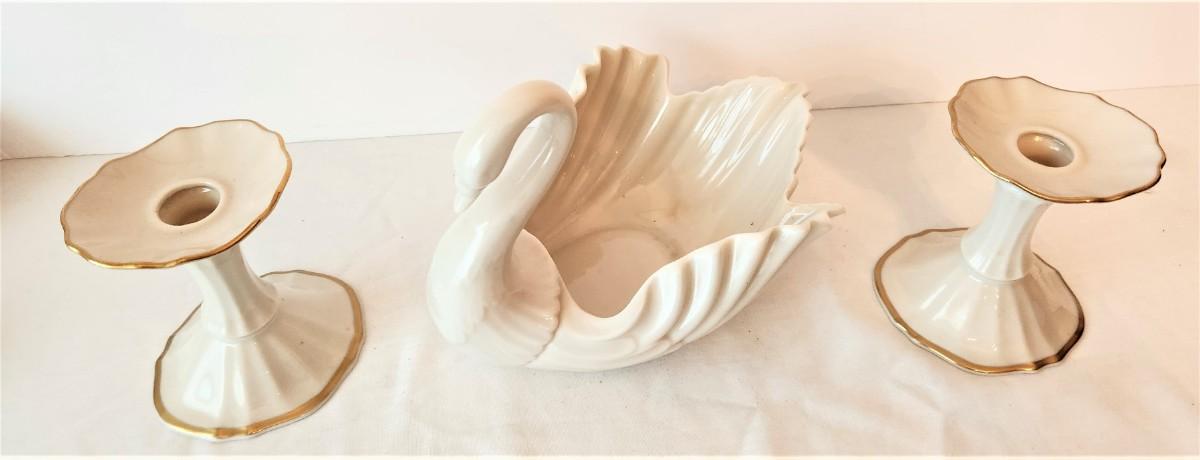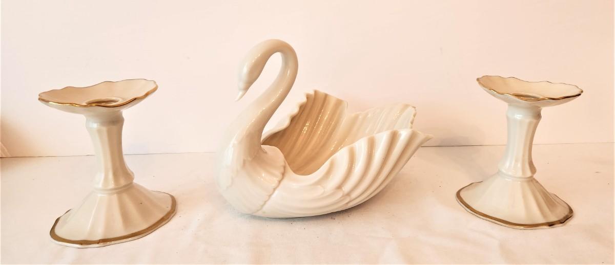 You get all you see here - two LENOX candlesticks (4.5" tall) plus a pretty LENOX Swam, 6" tall. All in good condition.