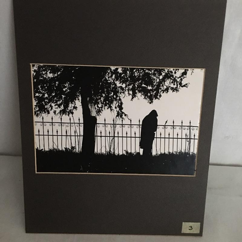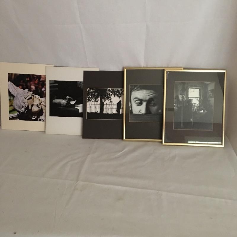 Five unique photos of people and a statue. Two photos are framed and the other three are ready for framing. Frames measure 11.5” x 14.5”.
