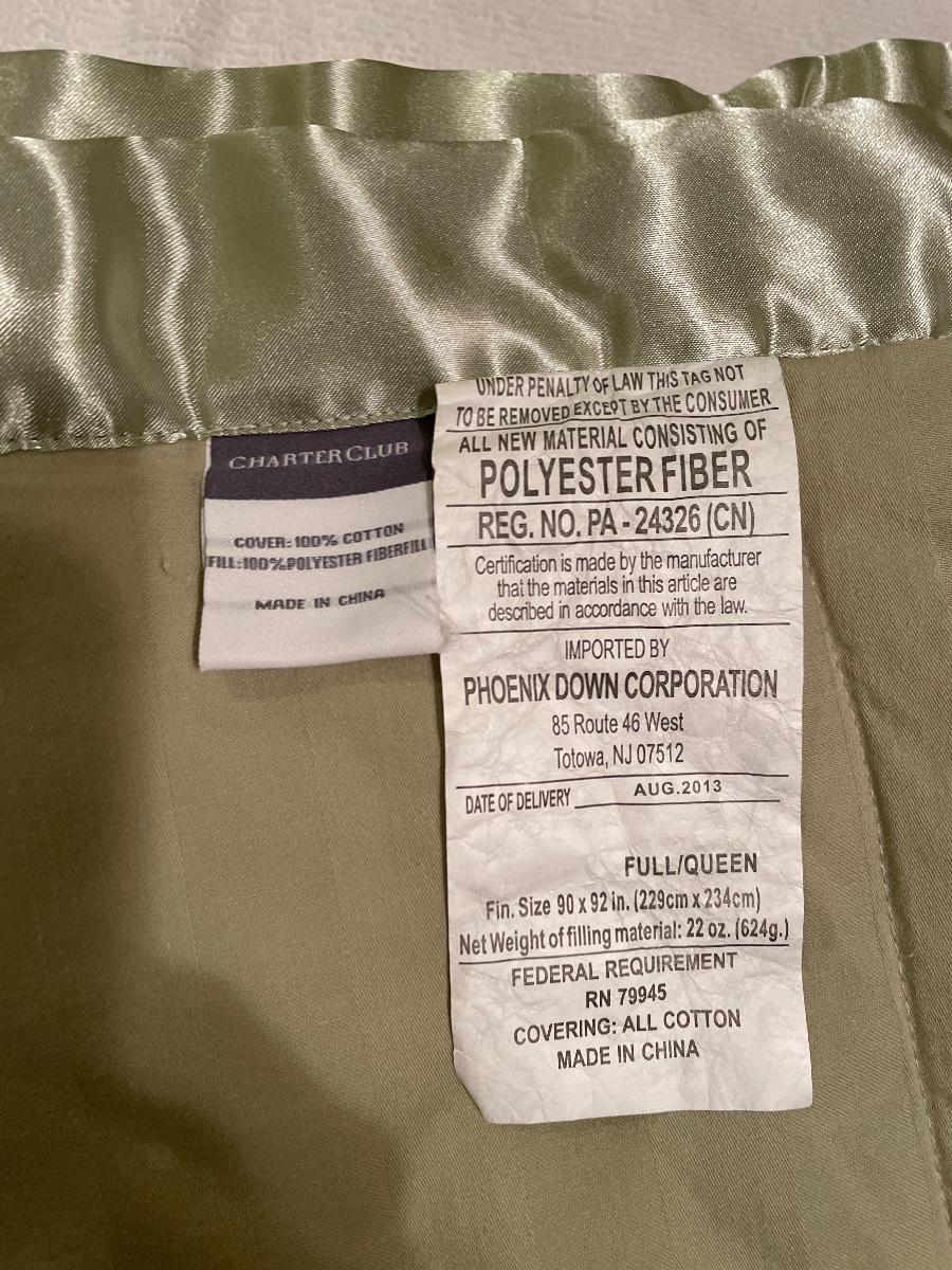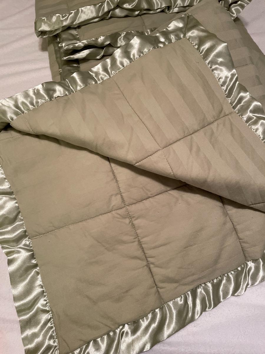 Sage green tone-on-tone stripe cotton fabric over poly fill. Like new condition measure 88" X 90"