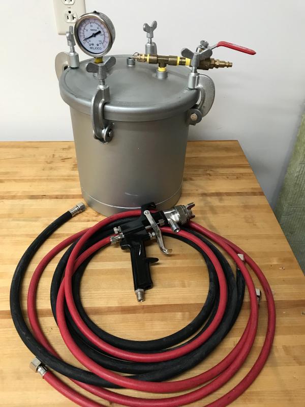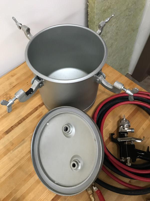 2 1/2 gallon pressure feed paint tank with sprayer and hoses. Seems to be in like new condition. Lot is available for local pick up in Asheville, NC only.