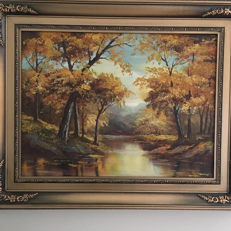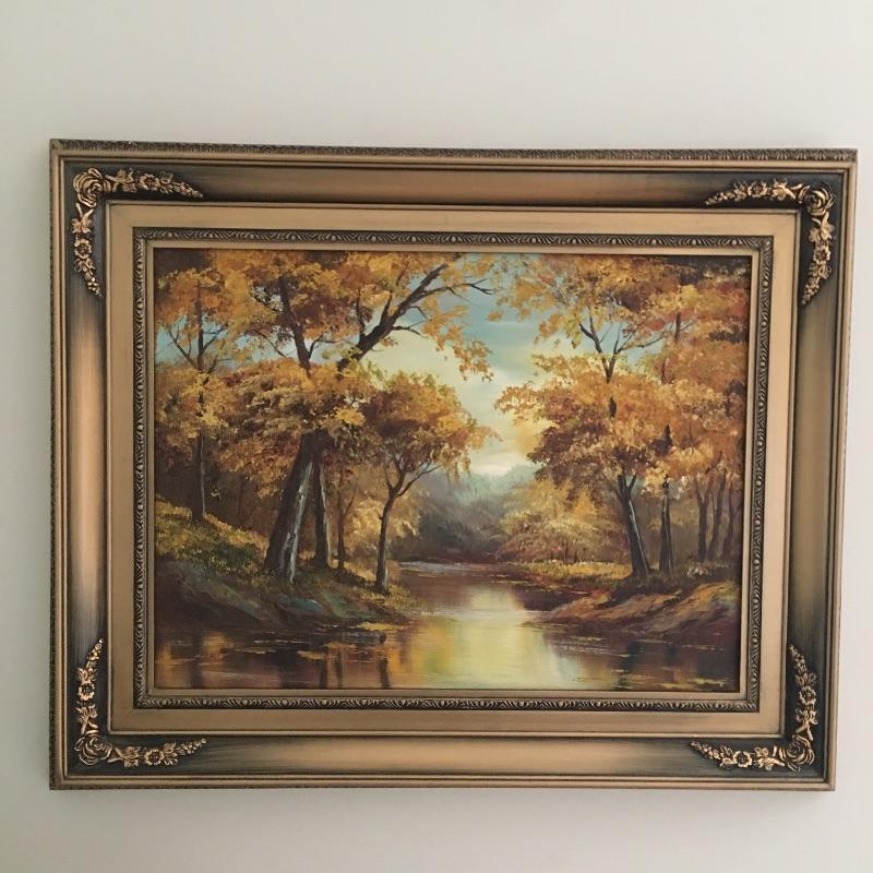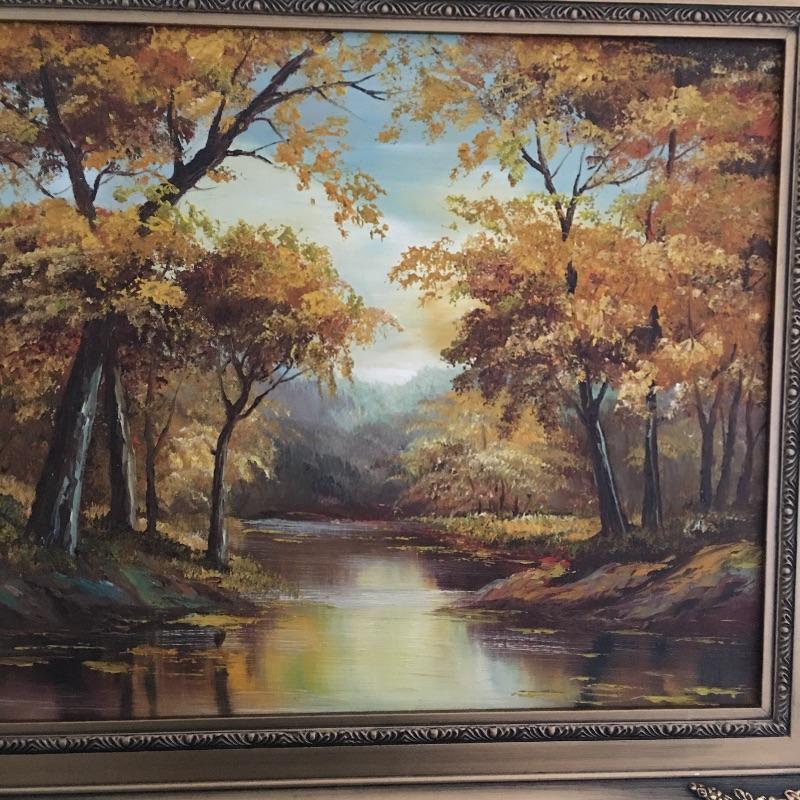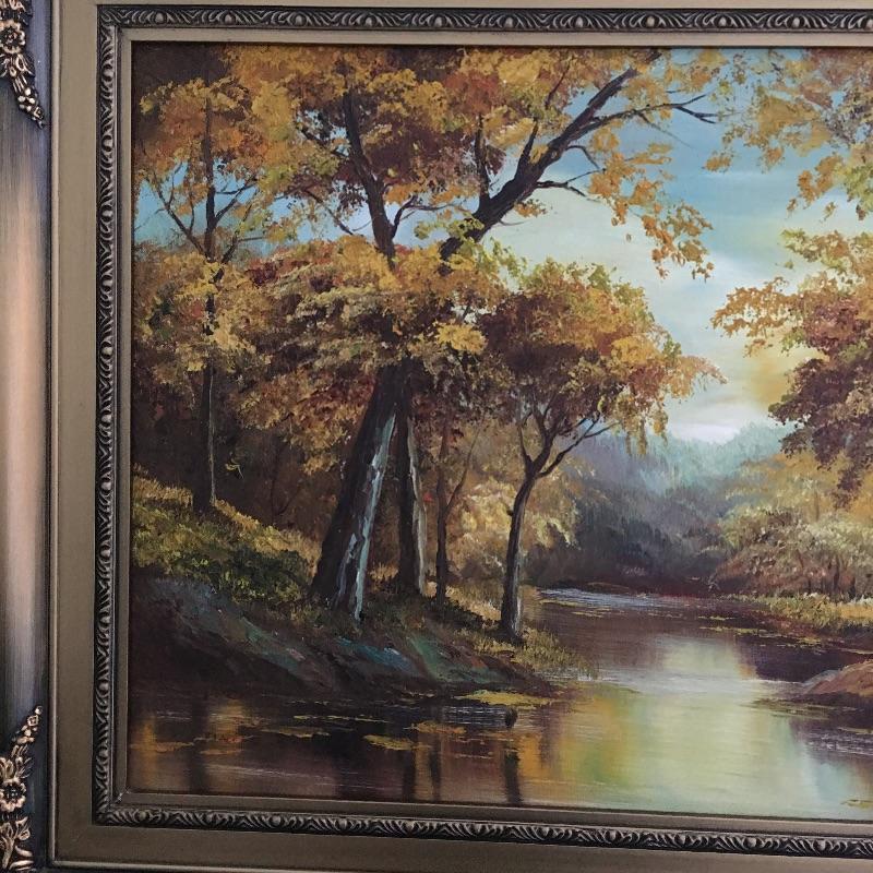 Signed and framed oil painting of a beautiful landscape. Painting appears to be signed C. Price, see pictures. A stunning painting that makes you feel like you could get lost in its beauty. Frame measures 26” x 31.75”.