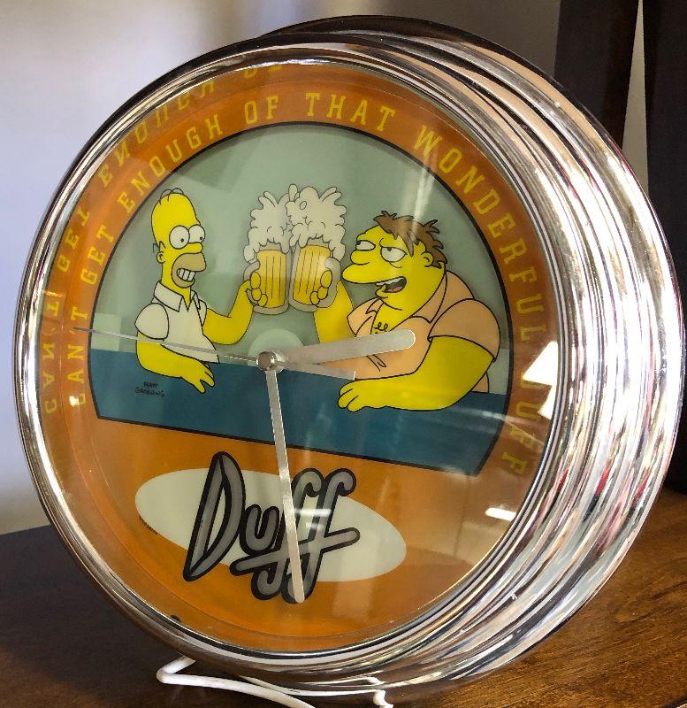 Lot #53 Simpsons Duff Clock With movement of Barney and Homer toasting