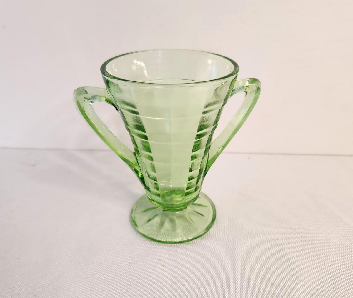 Lot #53 Uranium Vaseline Depression Glass 2-handled Vessel