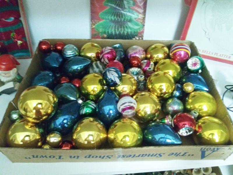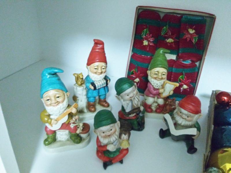 GROUP OF GNOMES AND VINTAGE GLASS BALL ORNAMENTS