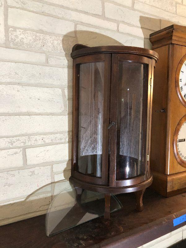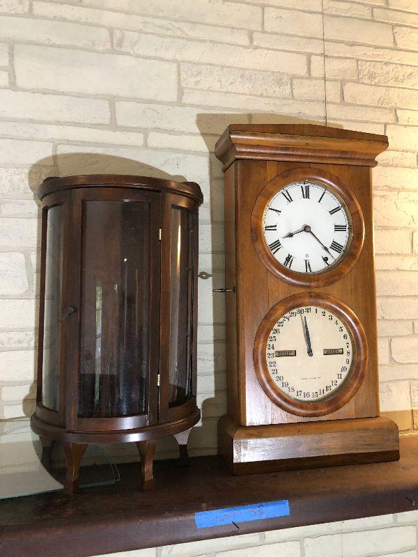 Large mantle clock with 2 faces (12" x 27") and small display cabinet (12" x 22").