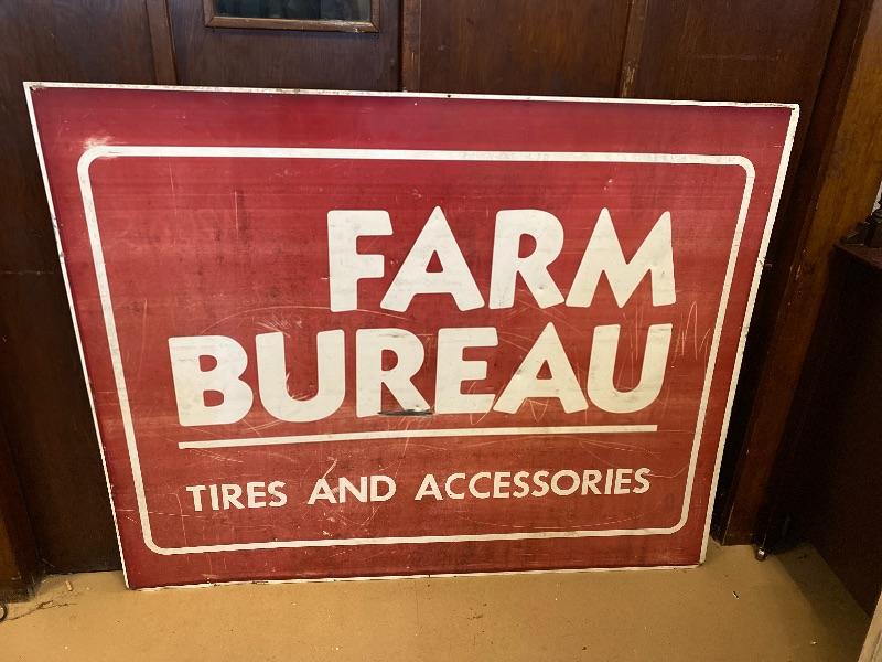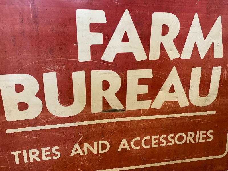 Lot# 53 Vintage Large Metal FARM BUREAU Sign Tires and Accessories Advertisement Sign