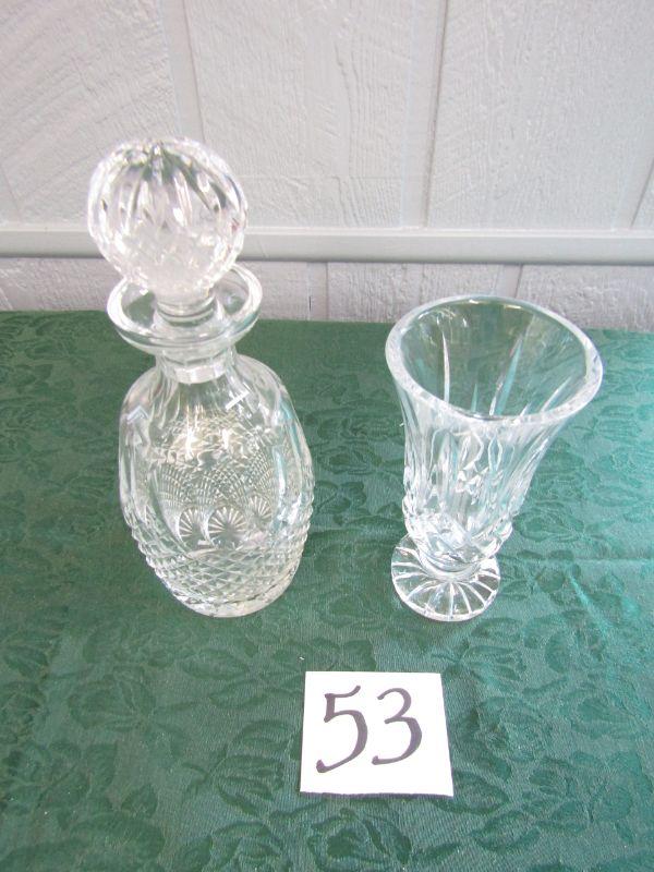 LOT 53  WATERFORD DECANTER AND CRYSTAL VASE