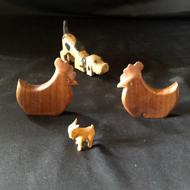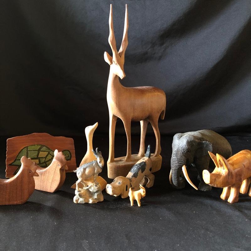 The common denominator of this eclectic mix is that the animals are all made of wood. From elephants and other African animals to farmyard this cute lot has variety as well as craftsmanship!