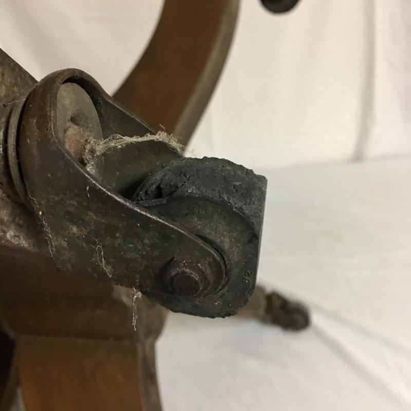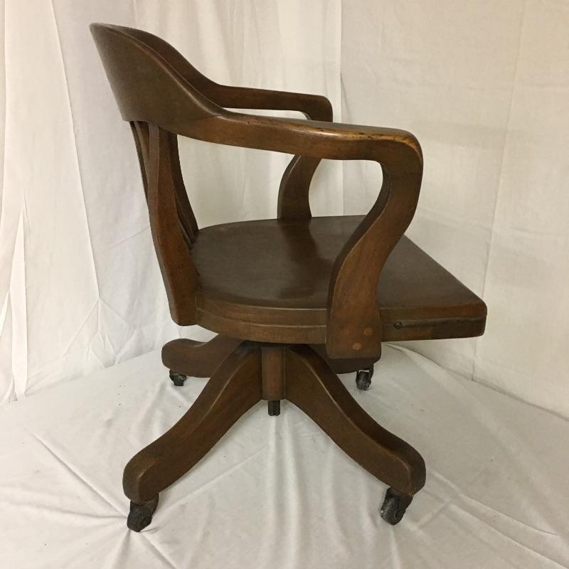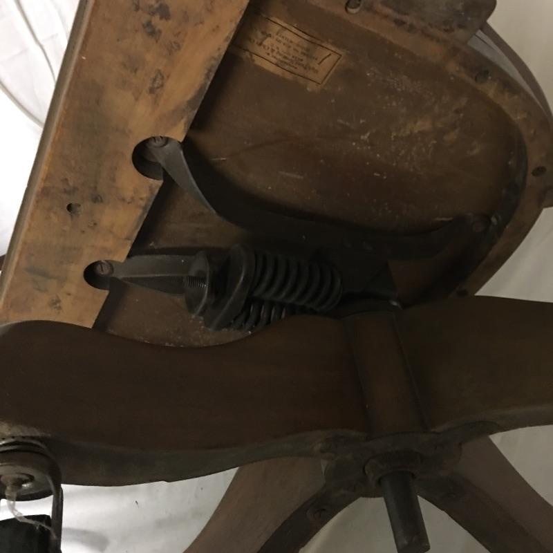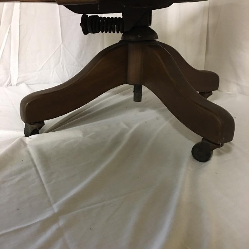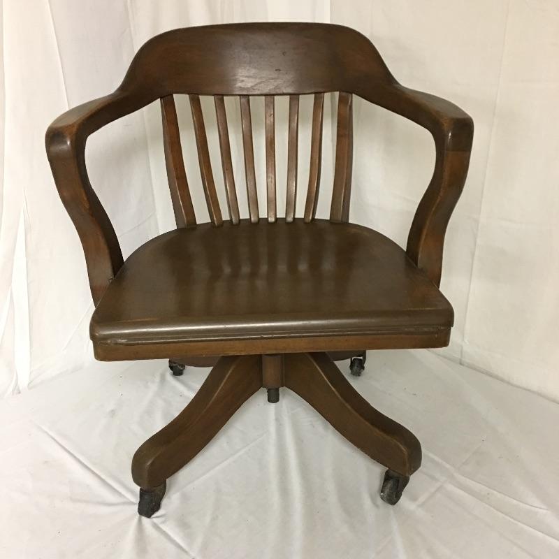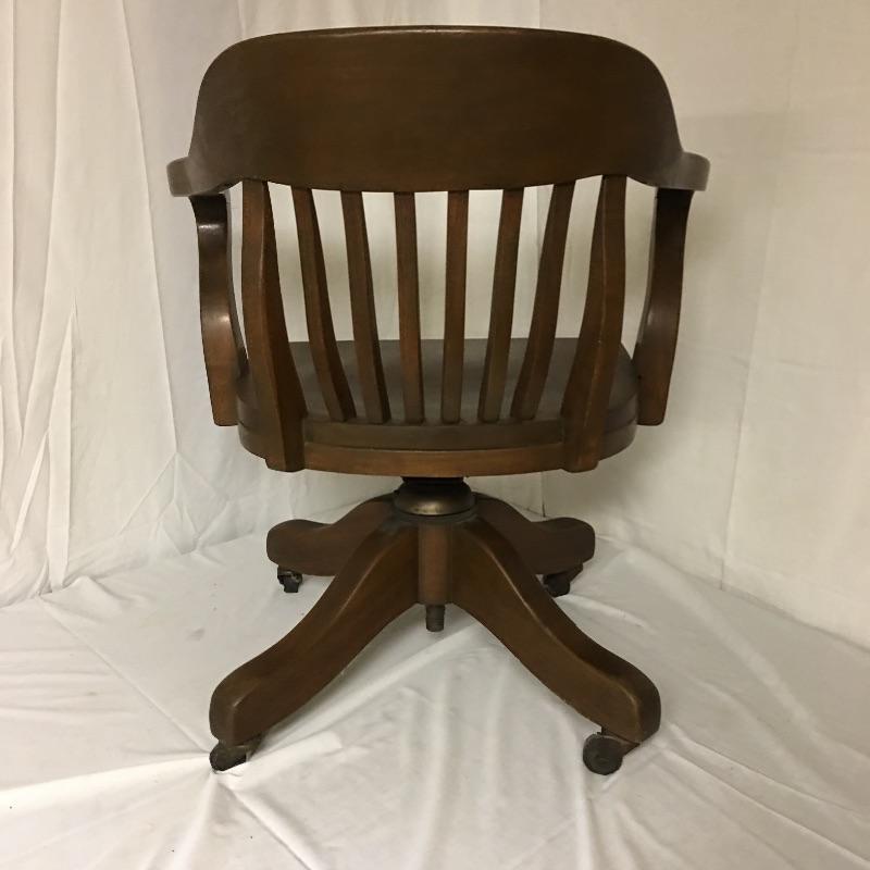 Beautiful wooden desk chair manufactured by High Point Bending and Chair Co. A lovely chair with a great patina on casters. Two wheels are flat and may need replacing but otherwise the chair seems to be in great shape, see pictures. Chair measures 25” x 19” x 31”.