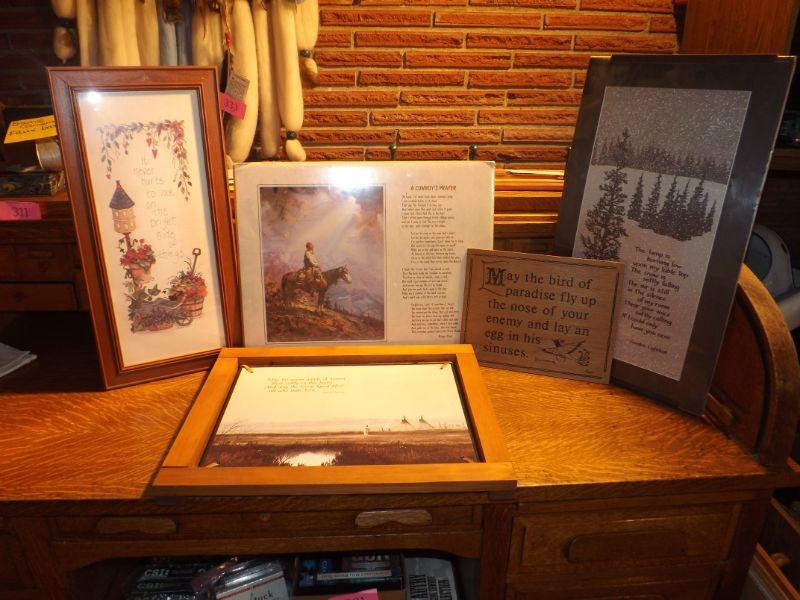FIVE PIECES OF ART WORK ALL FEATURING DIFFERENT POETRY