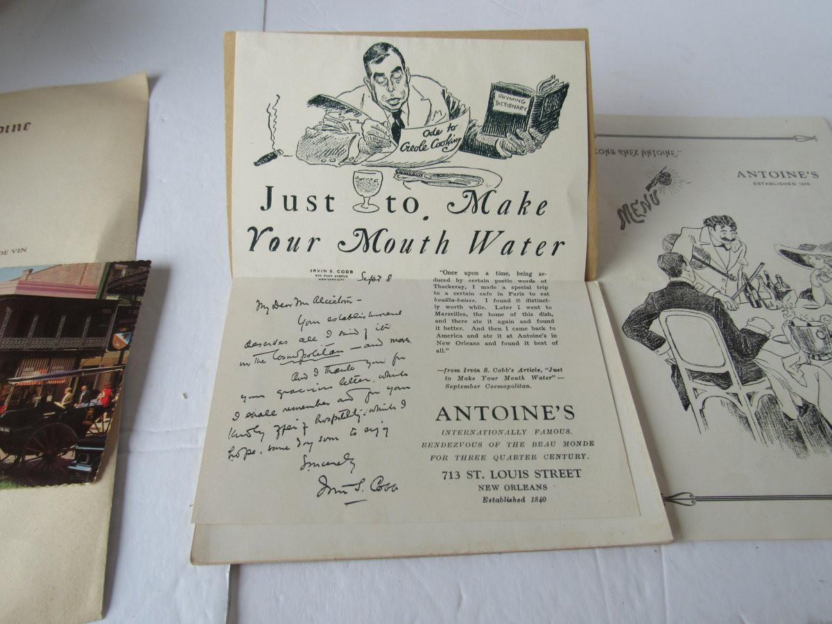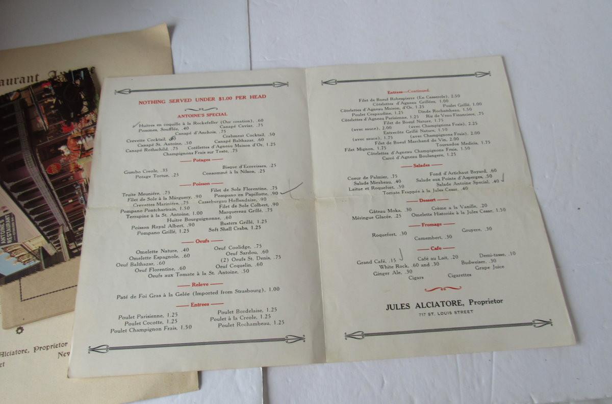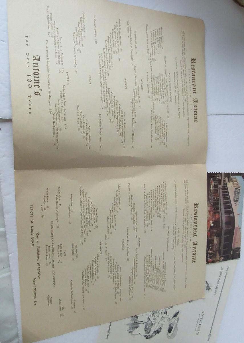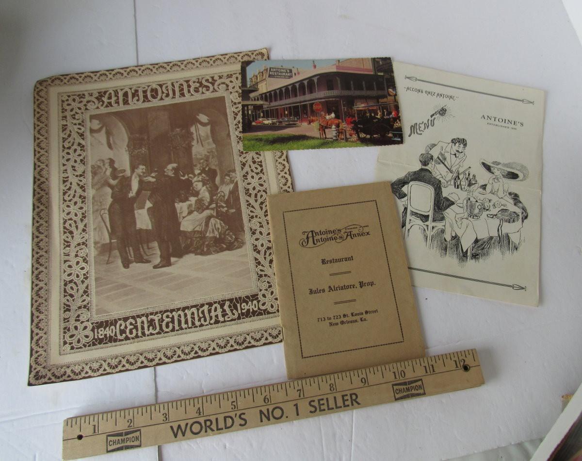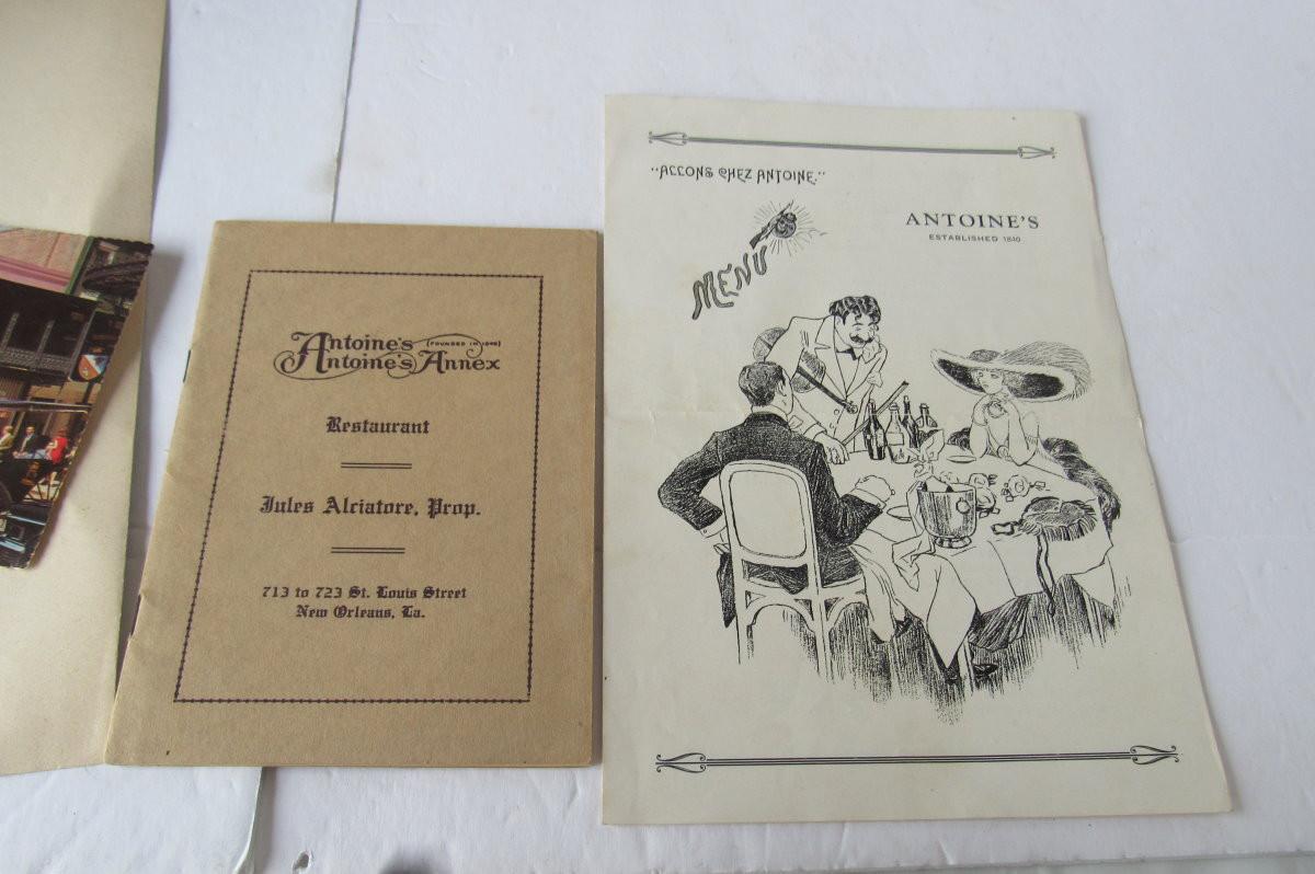 Lot 531: Interesting Antoines Restaurant of New Orleans Vintage Menus, Etc