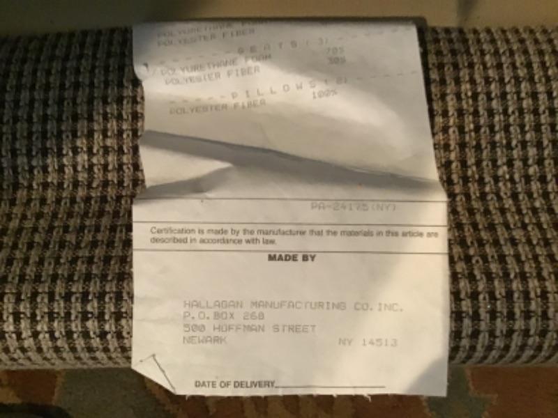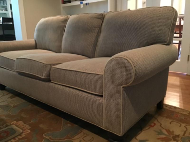 Upholstered Like New Very comfortable 3 cushion Rolled Arm Sofa, by Hallagan Manufacturing Company