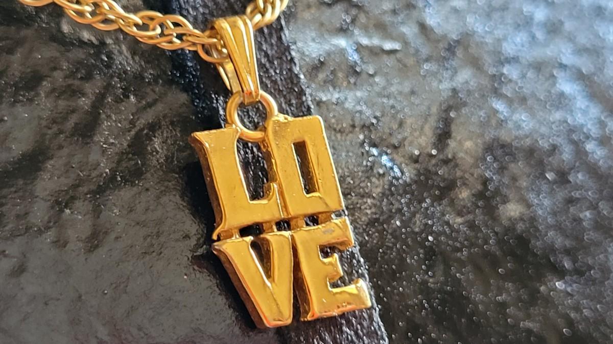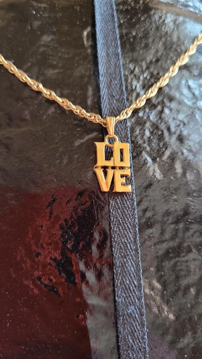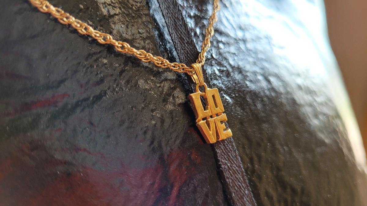 Lot 532: 18" Length ROBERT INDIANA Love Charm 1/20 12k Gold Plated Charm