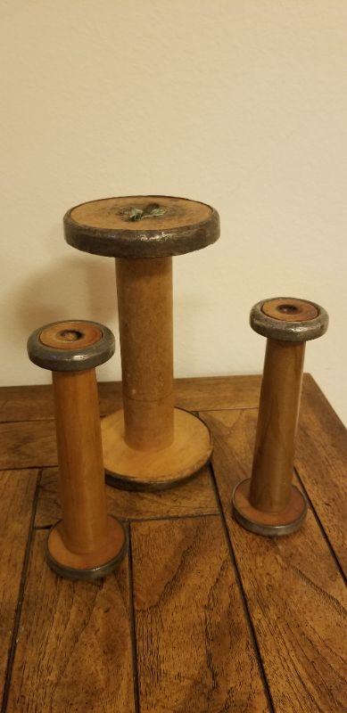 Lot #534: Antique/Vintage Large Thread Wood Spools or Hat Stands