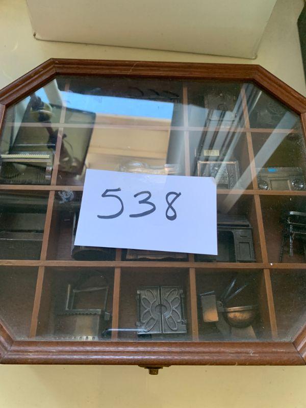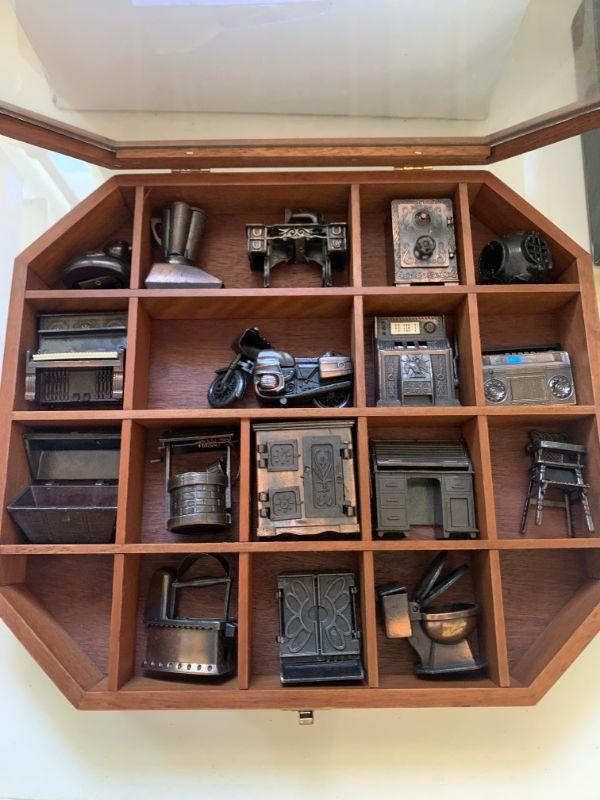 Lot 538. Collection of vintage and unique pencil sharpeners in wood display case