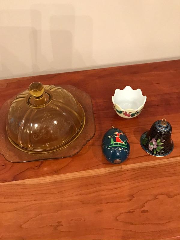 Also in this lot - covered candy dish, additional egg cup , decorative egg, and bell