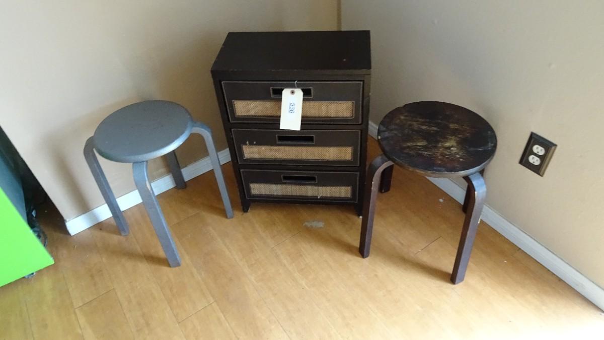 LOT 536 STORAGE DRAWERS AND TWO STOOLS AS -IS